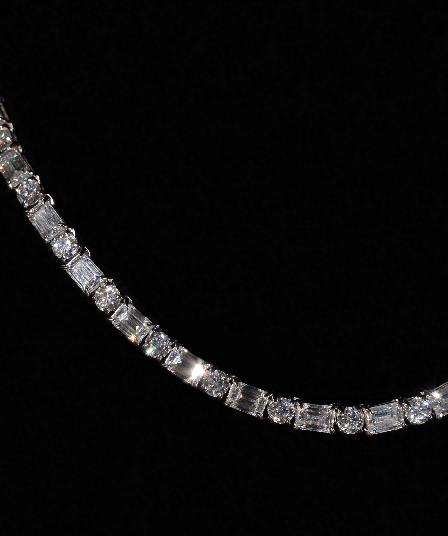 5mm Round & Emerald Cut Tennis Necklace (White Gold)
