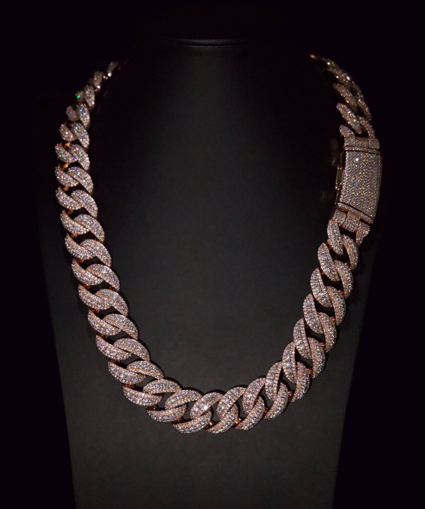 12mm Raised Prong Cuban Link Chain (Rose Gold)