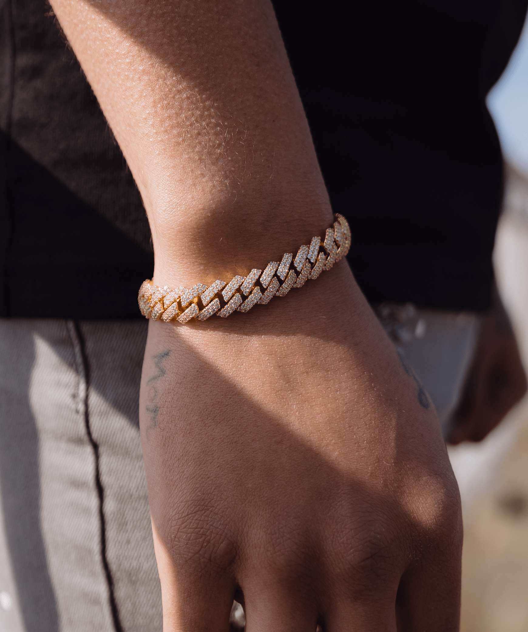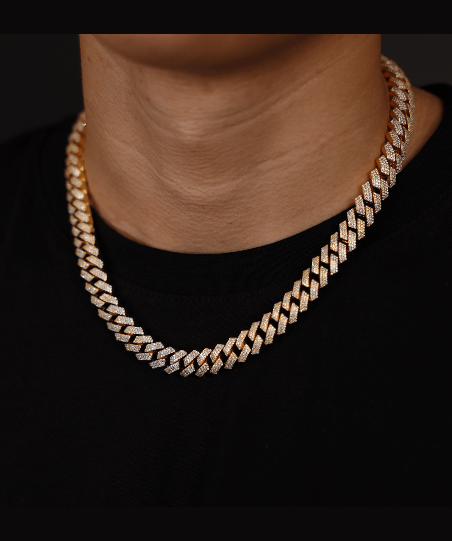 12mm Iced Cuban Link Necklace in Yellow Gold