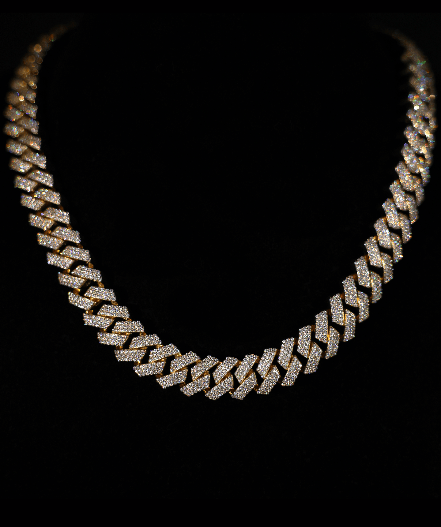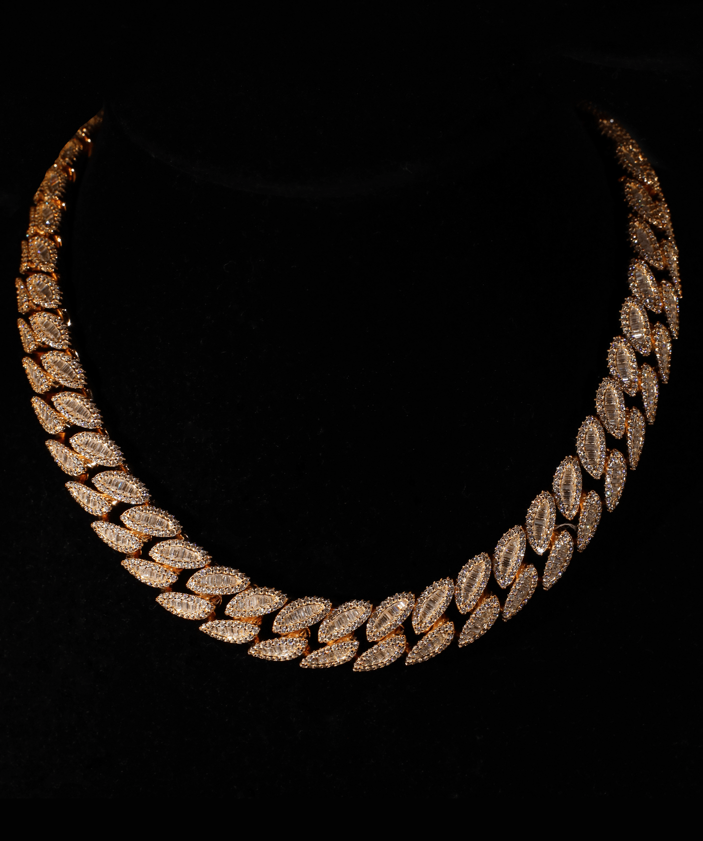 16mm Oval Baguette Cuban Link Chain (Gold)