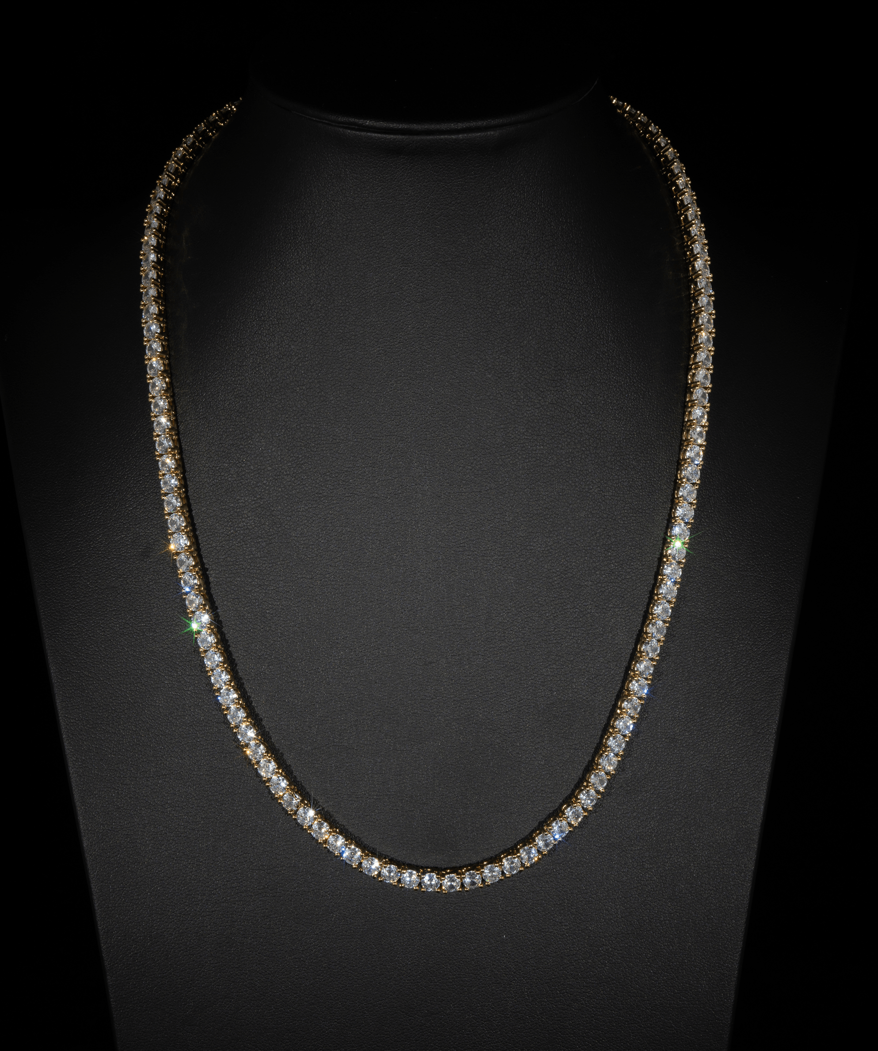 5mm Round & Emerald Cut Tennis Necklace (Gold)