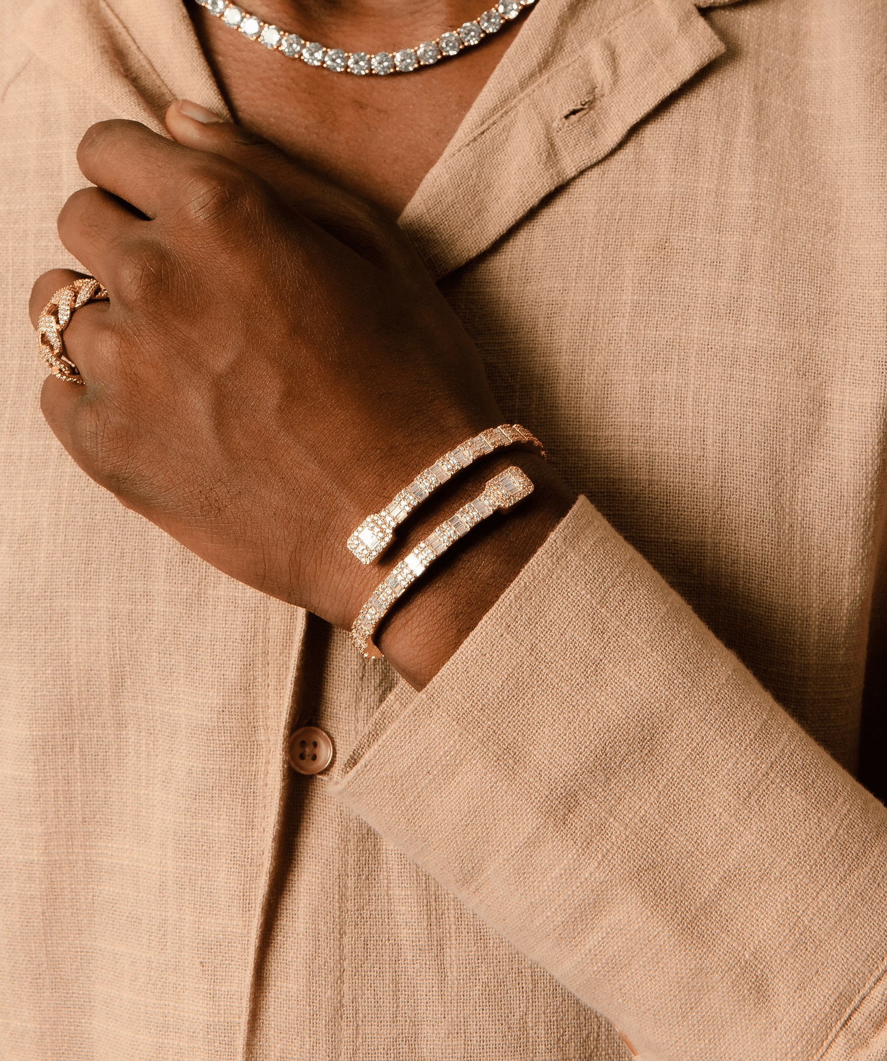 16mm Oval Baguette Cuban Link Bracelet (Gold)