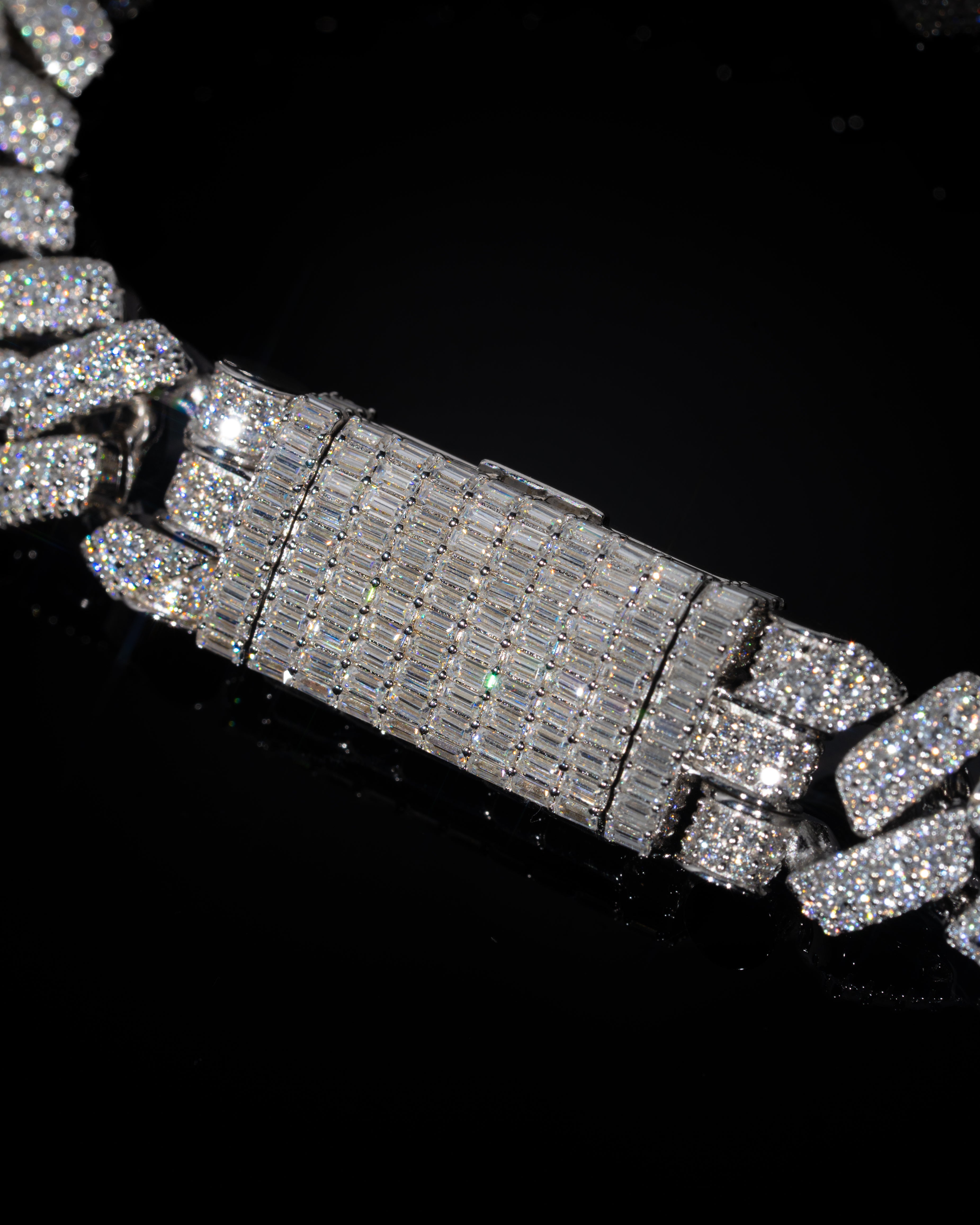 - Box clasp with emerald-cut stones