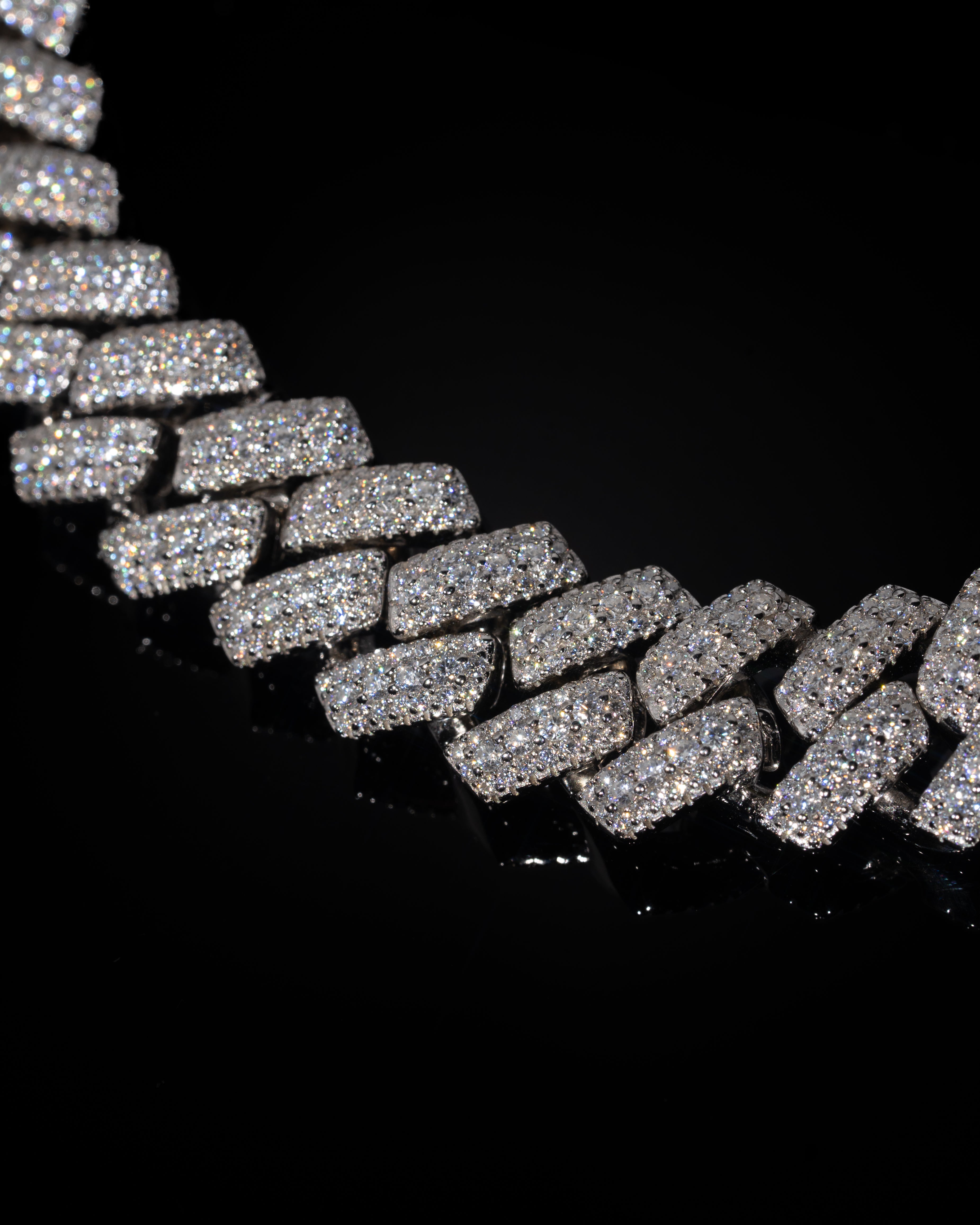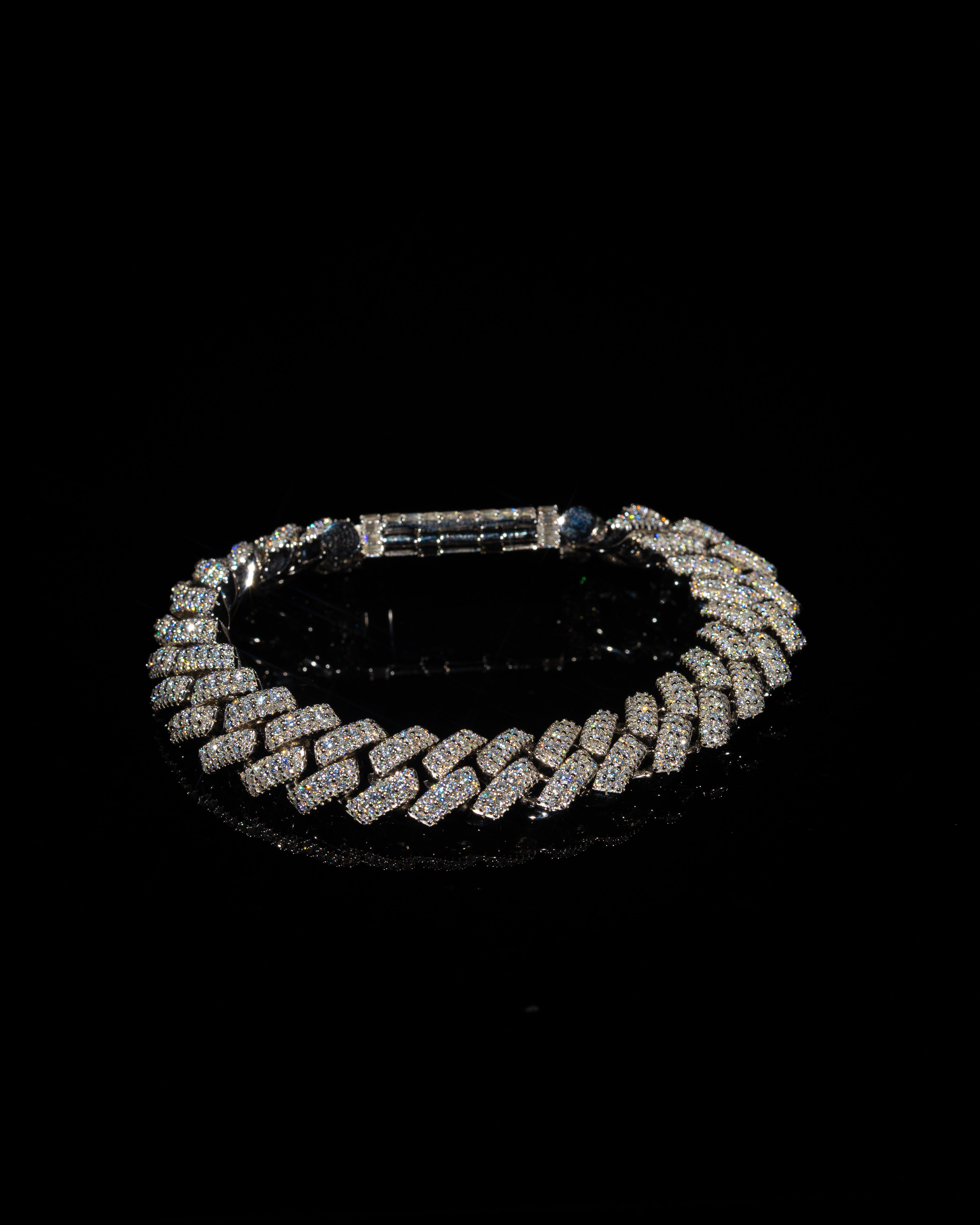 The ICED LONDON 12mm Raised Prong Cuban Link Bracelet redefines the traditional Cuban silhouette. Designed with a raised centre row of larger stones, this piece delivers depth and dimension while maximising light reflection. Crafted in solid 925 silver and finished with a rhodium plating for lasting durability. A statement of presence and refinement.