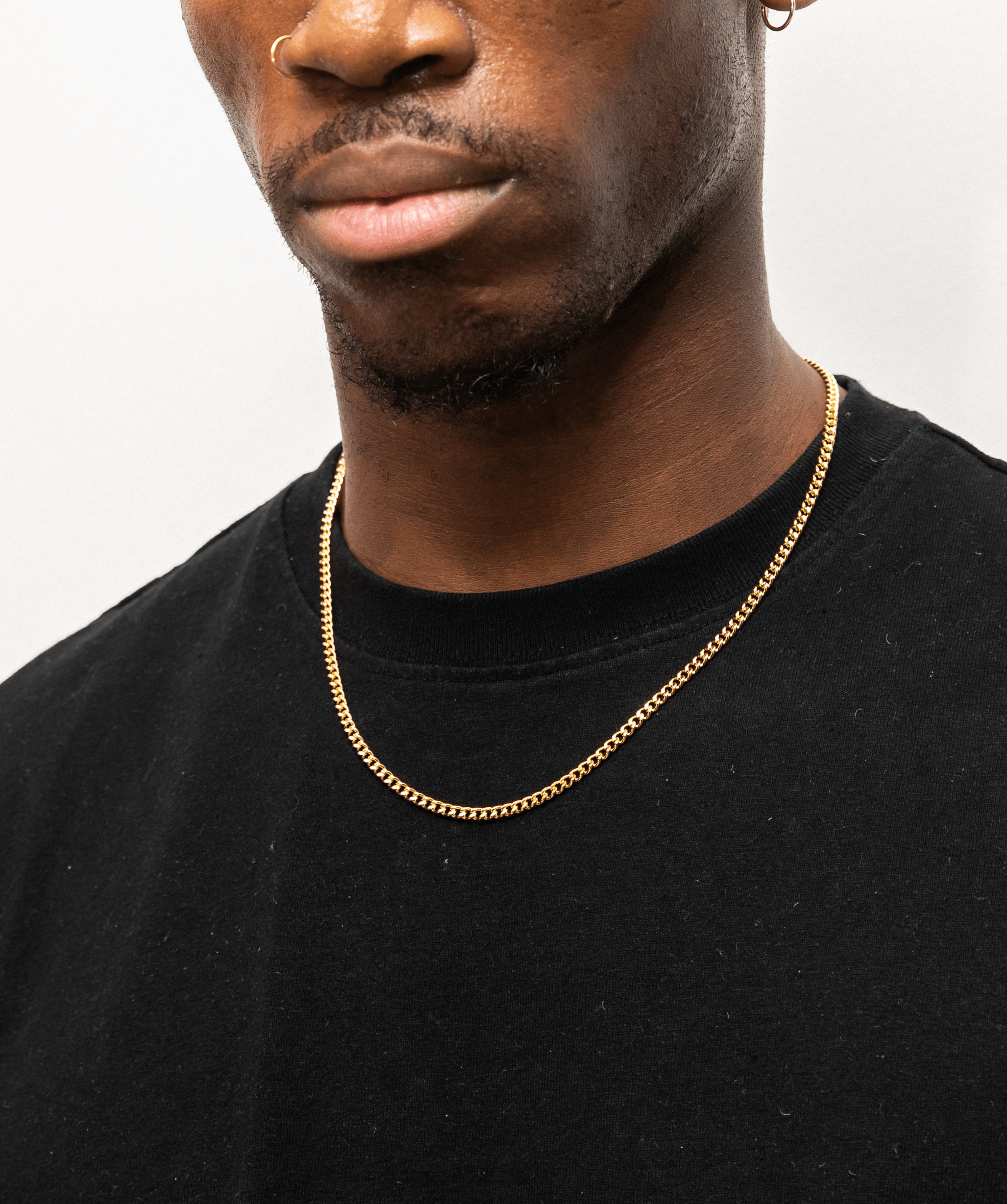 Our 3mm Cuban Link Chain delivers clean, understated style with durability you can trust for everyday wear. Crafted from 316L stainless steel and finished in a thick layer of 14k yellow gold, it’s designed to keep its shine through whatever the day throws at you. Lightweight, resilient, and always ready to layer or stand alone.