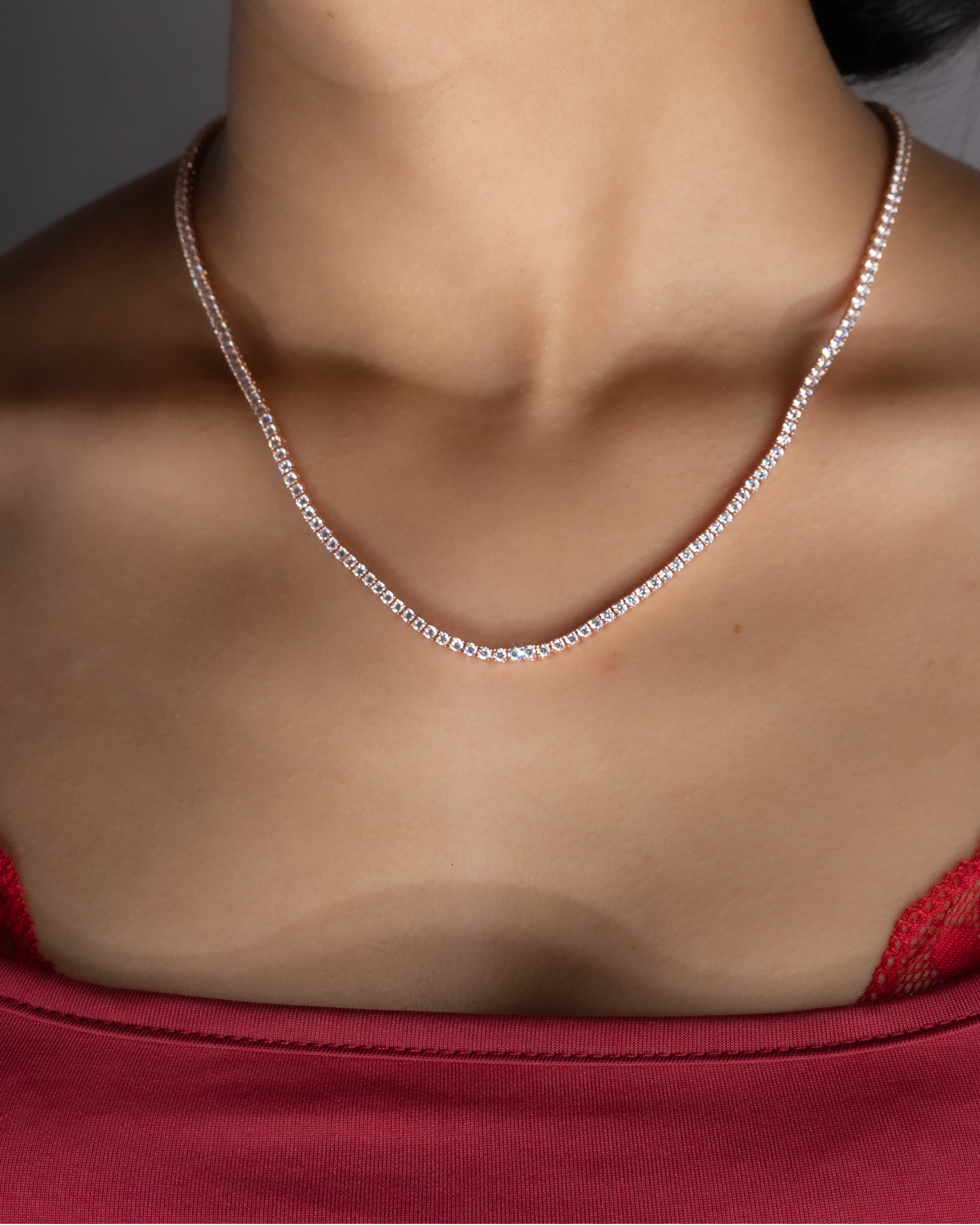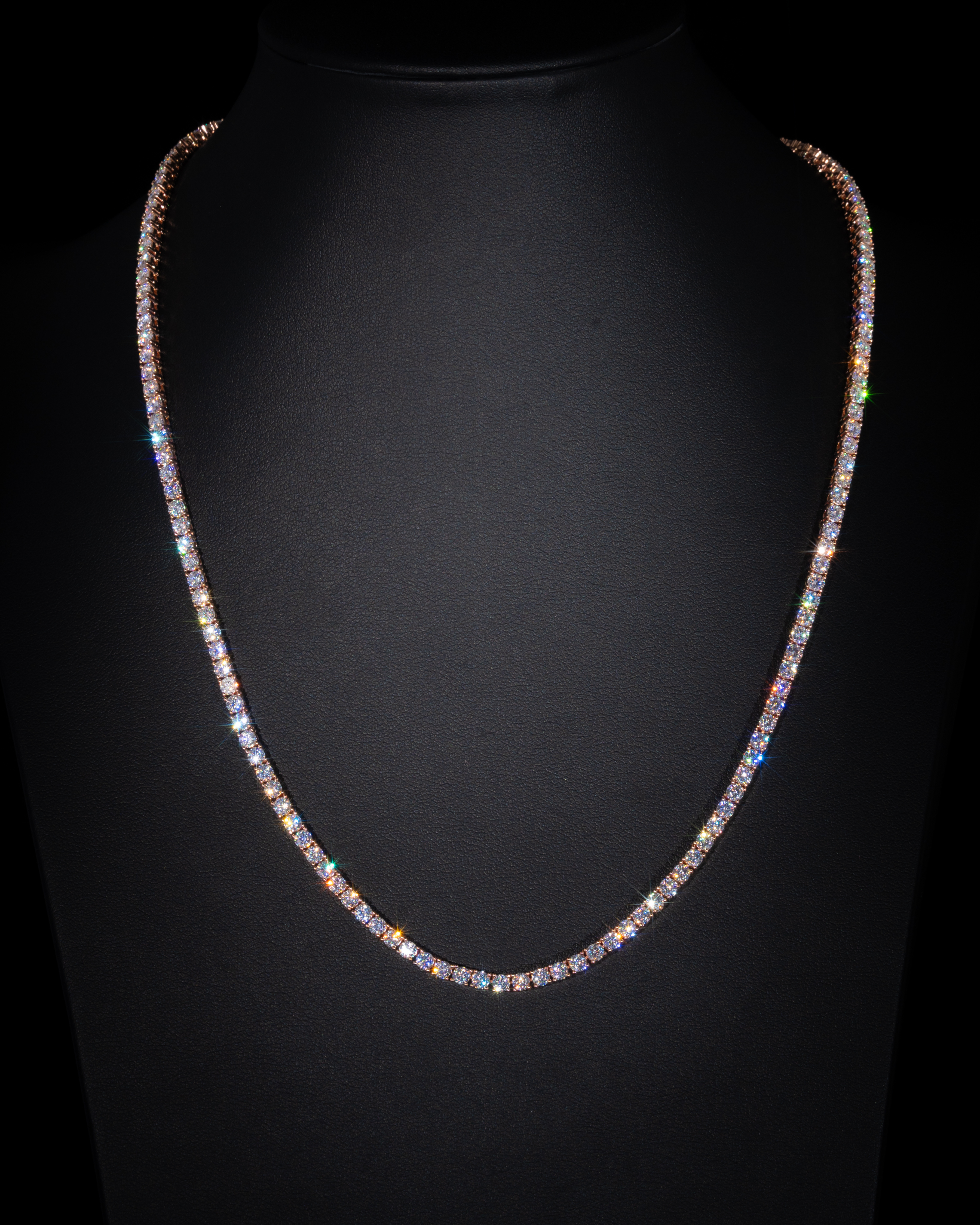 The ICED LONDON 3mm Tennis Chain is designed for those who appreciate clean, refined luxury. Set in solid 925 silver, each stone delivers exceptional clarity and shine. The classic design ensures versatility, whether worn alone or layered. Finished with a box clasp and safety latch for a secure fit.