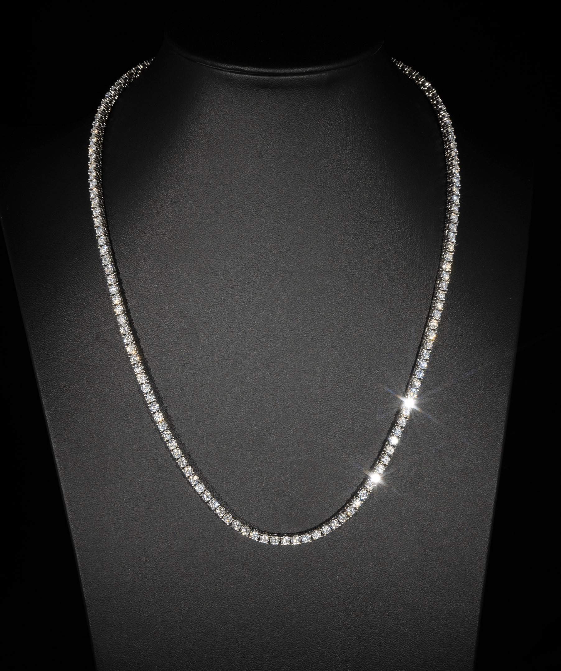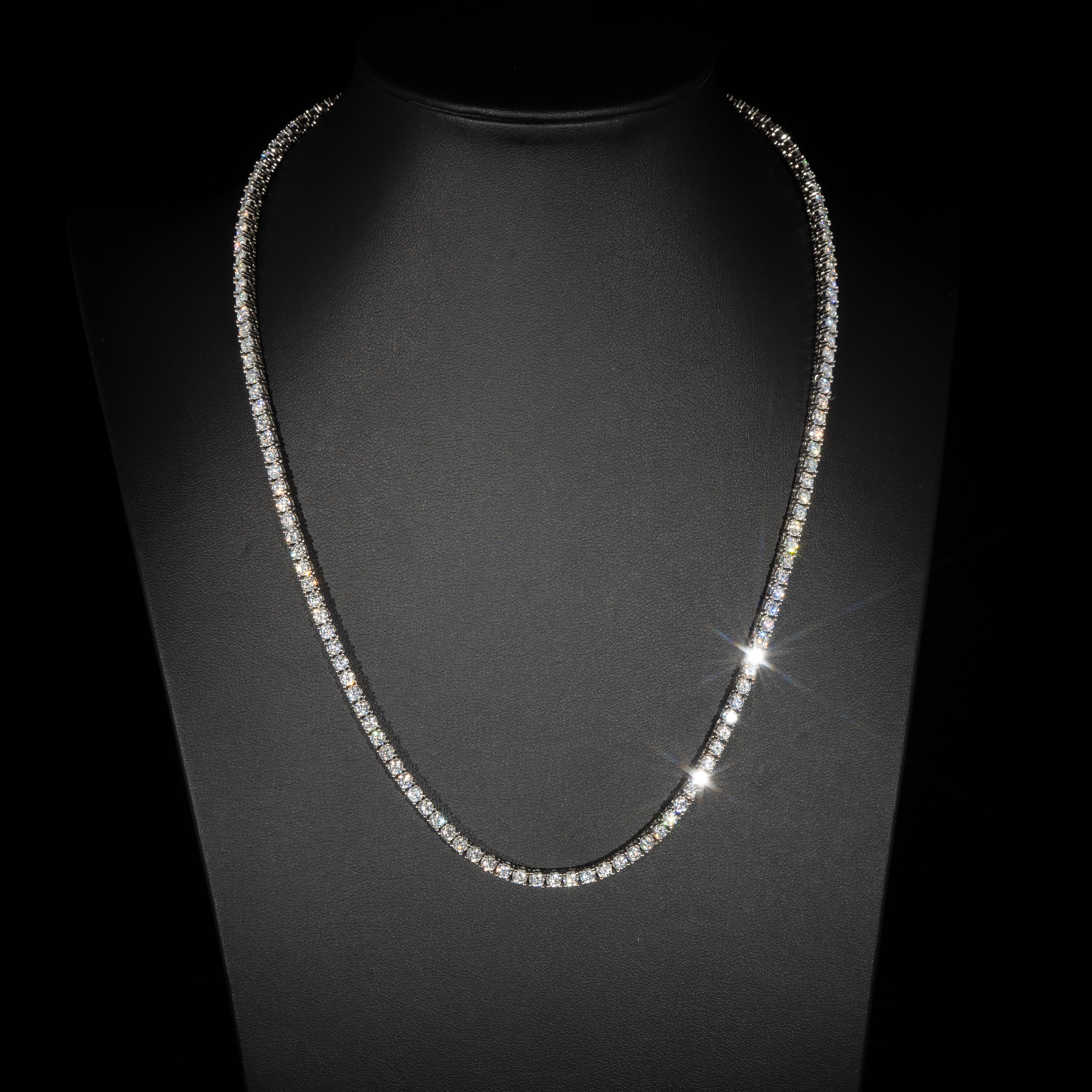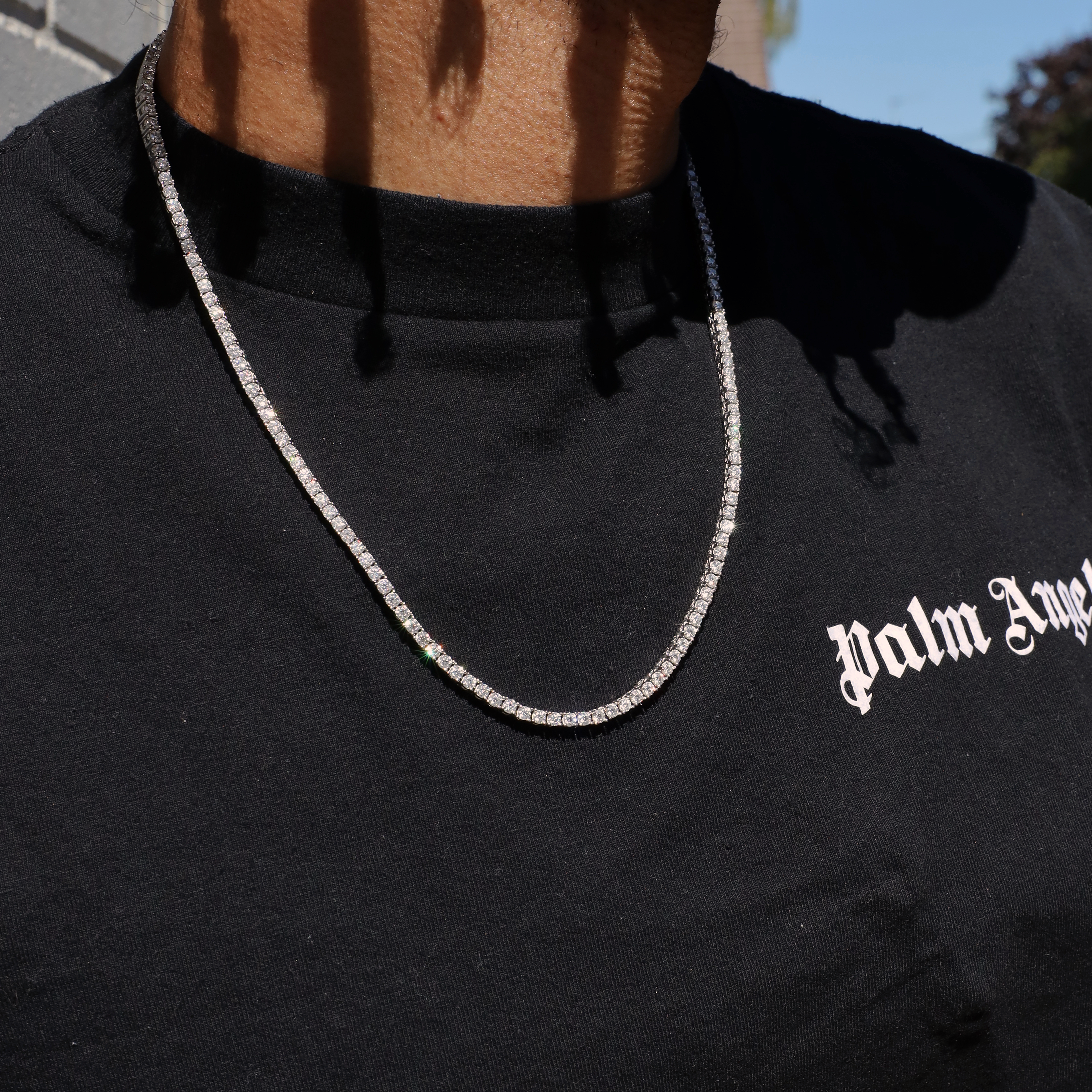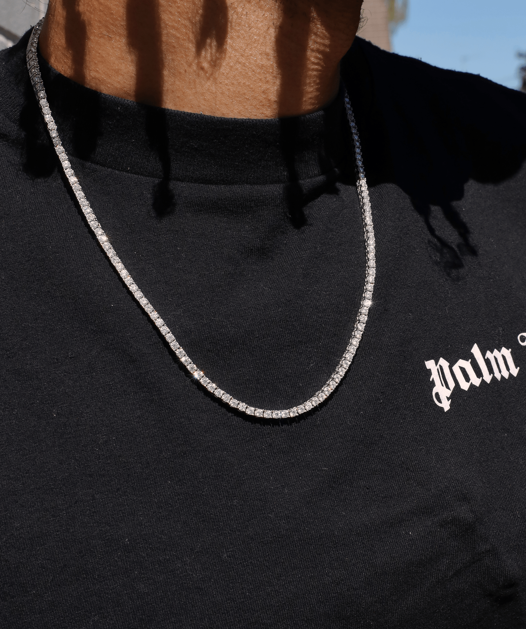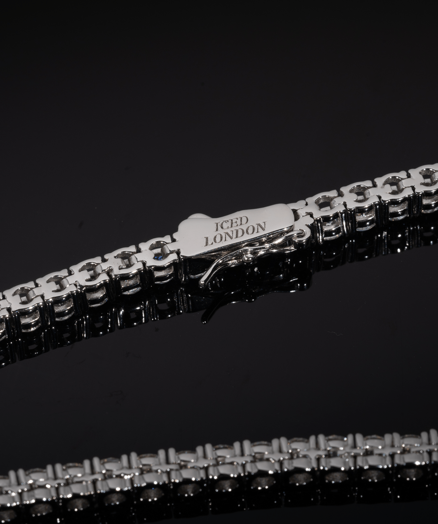 The ICED LONDON Tennis Chain is designed for those who appreciate clean, refined luxury. Set in solid 925 silver, each VVS Moissanite stone delivers exceptional clarity and shine. The classic design ensures versatility, whether worn alone or layered. Finished with a box clasp and safety latch for a secure fit.