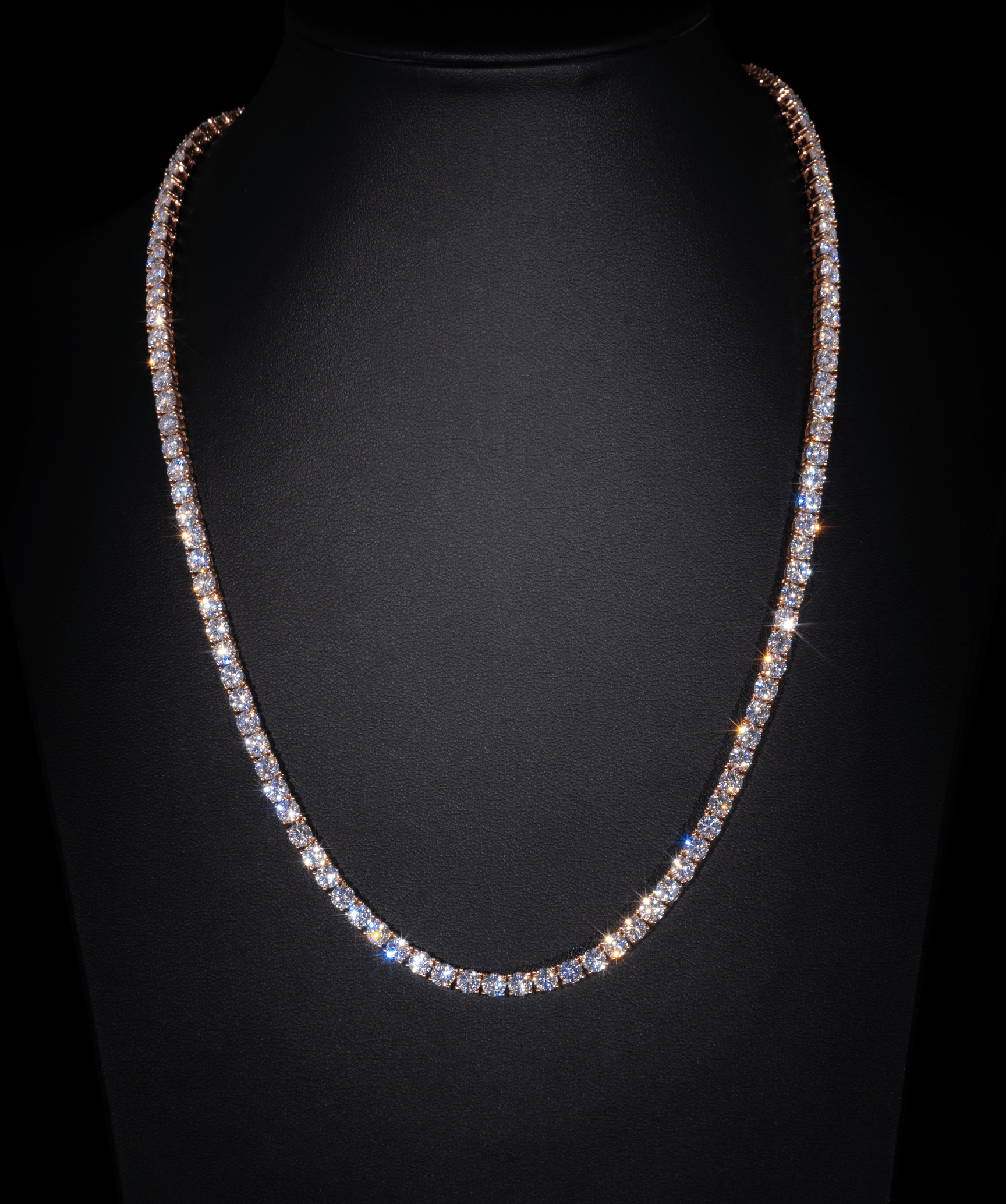 The ICED LONDON 4mm Tennis Chain is designed for those who appreciate clean, refined luxury. Set in solid 925 silver, each stone delivers exceptional clarity and shine. The classic design ensures versatility, whether worn alone or layered. Finished with a box clasp and safety latch for a secure fit.