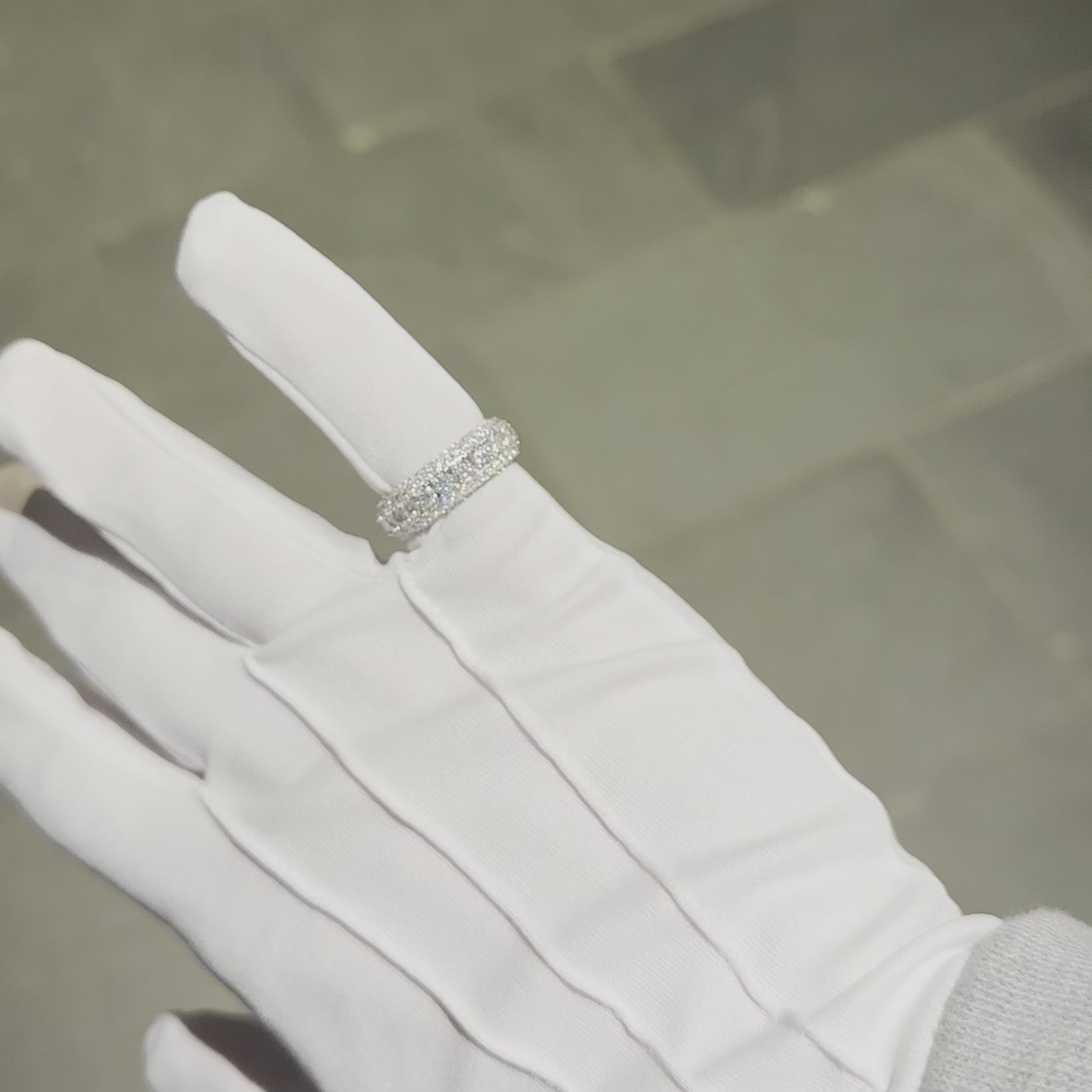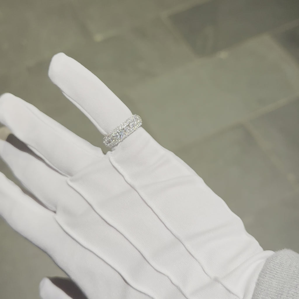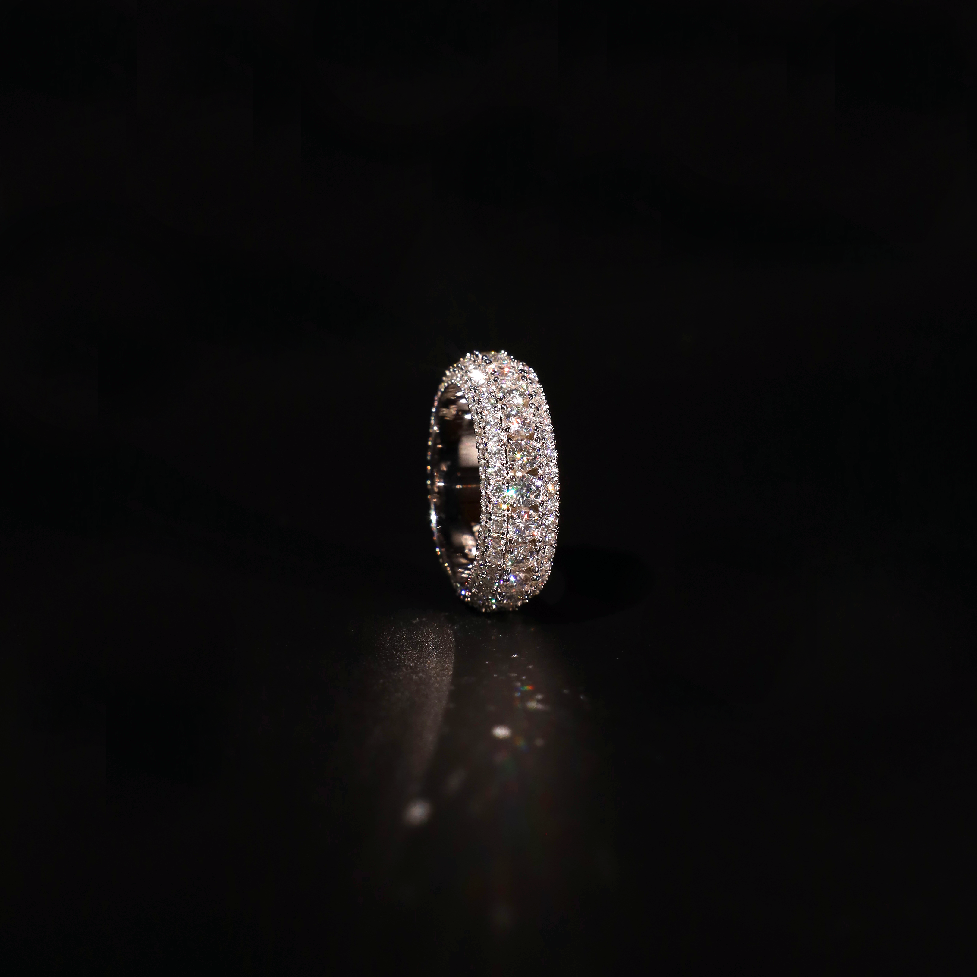 The 5-Row Band Ring is engineered for those who seek presence and power in their jewellery. Featuring a dynamic blend of pavé and prong-set stones, its multi-dimensional structure catches and reflects light from every angle. The central row of bold round-cut stones is framed by intricate pavé detailing, enhancing depth and intensity. With a 9.4mm width and a robust yet comfortable fit, this piece asserts itself effortlessly. Inside, the ICED LONDON engraving signifies authenticity, marking it as a creation of uncompromising quality. A ring not just to wear but to own—a symbol of status, ambition, and distinction.