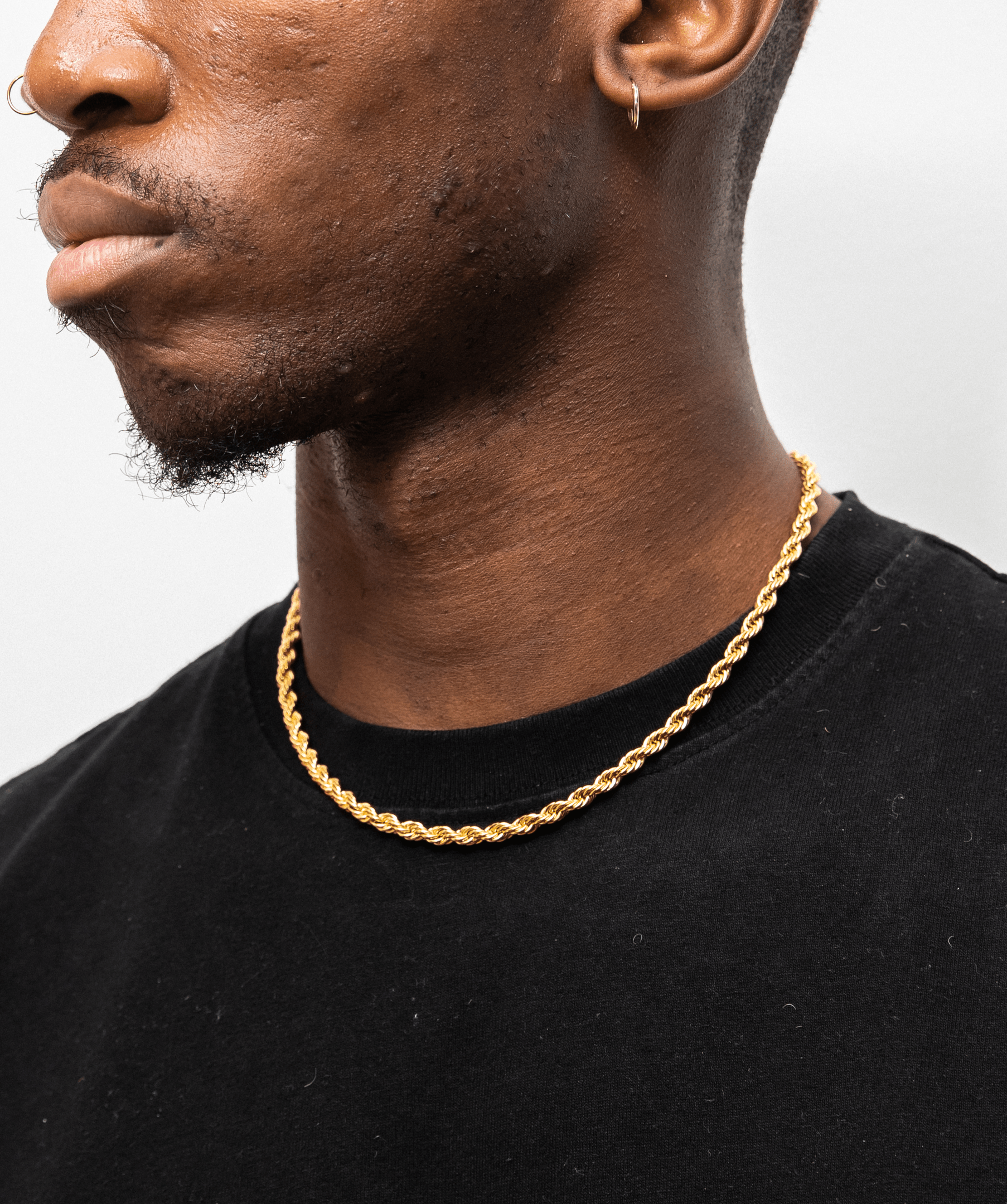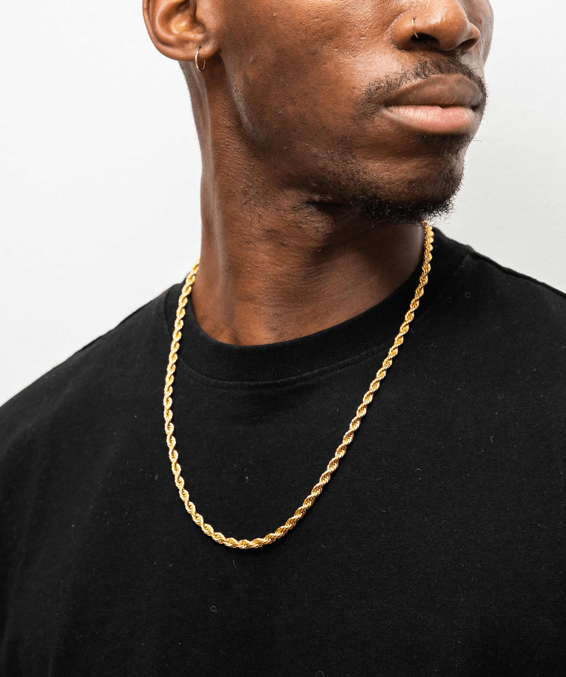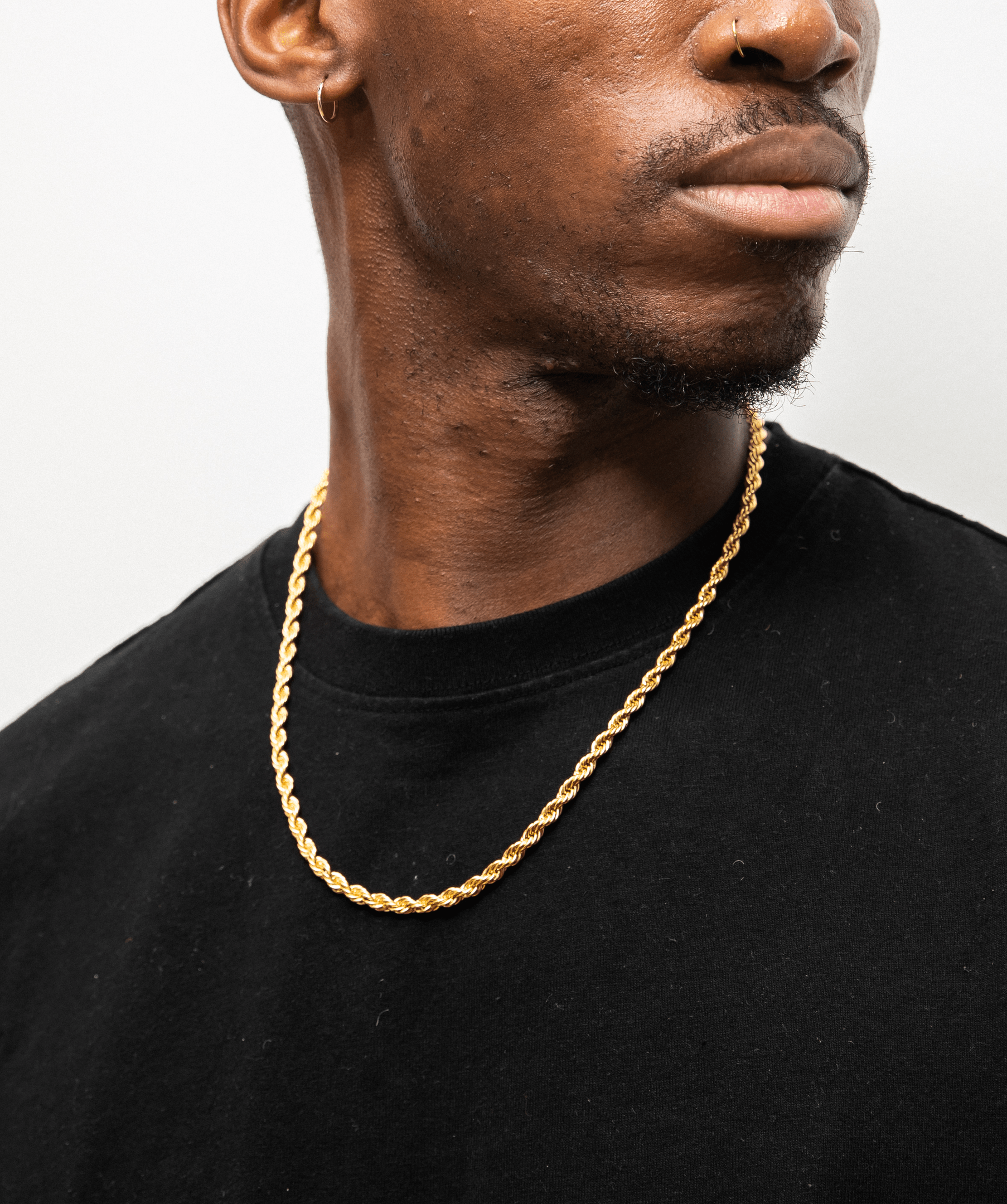 Start your chain collection with our gold 5mm Rope Chain. This chain boasts the perfect weight and shine for the piece you’ll wear day after day. Make it the staple in your collection.