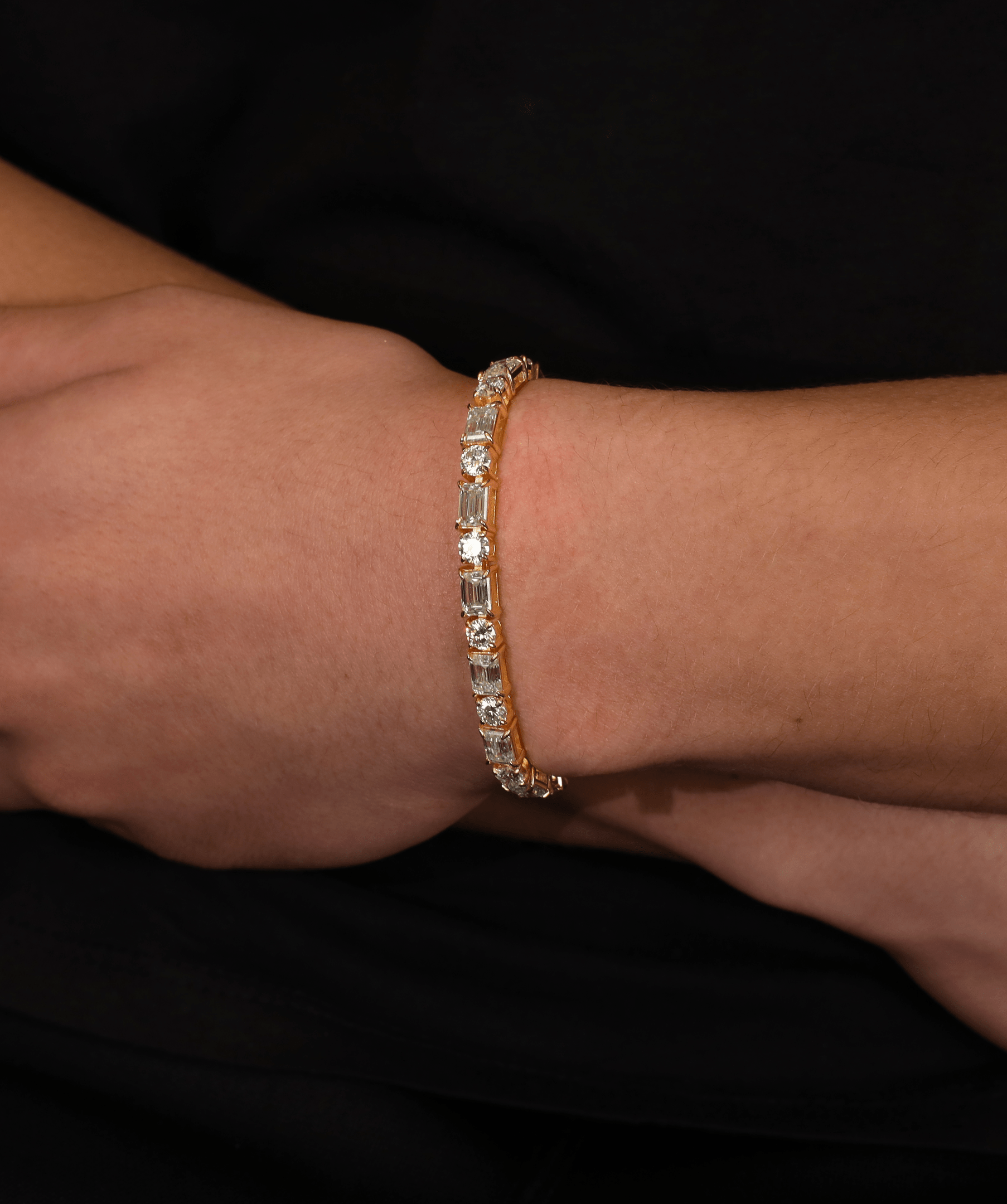 A refined blend of brilliance and elegance, the 5mm Round & Emerald Tennis Bracelet seamlessly combines the timeless allure of round-cut stones with the sleek sophistication of emerald-cut stones. A delicate yet powerful statement of luxury, designed for those who appreciate the art of fine jewellery.