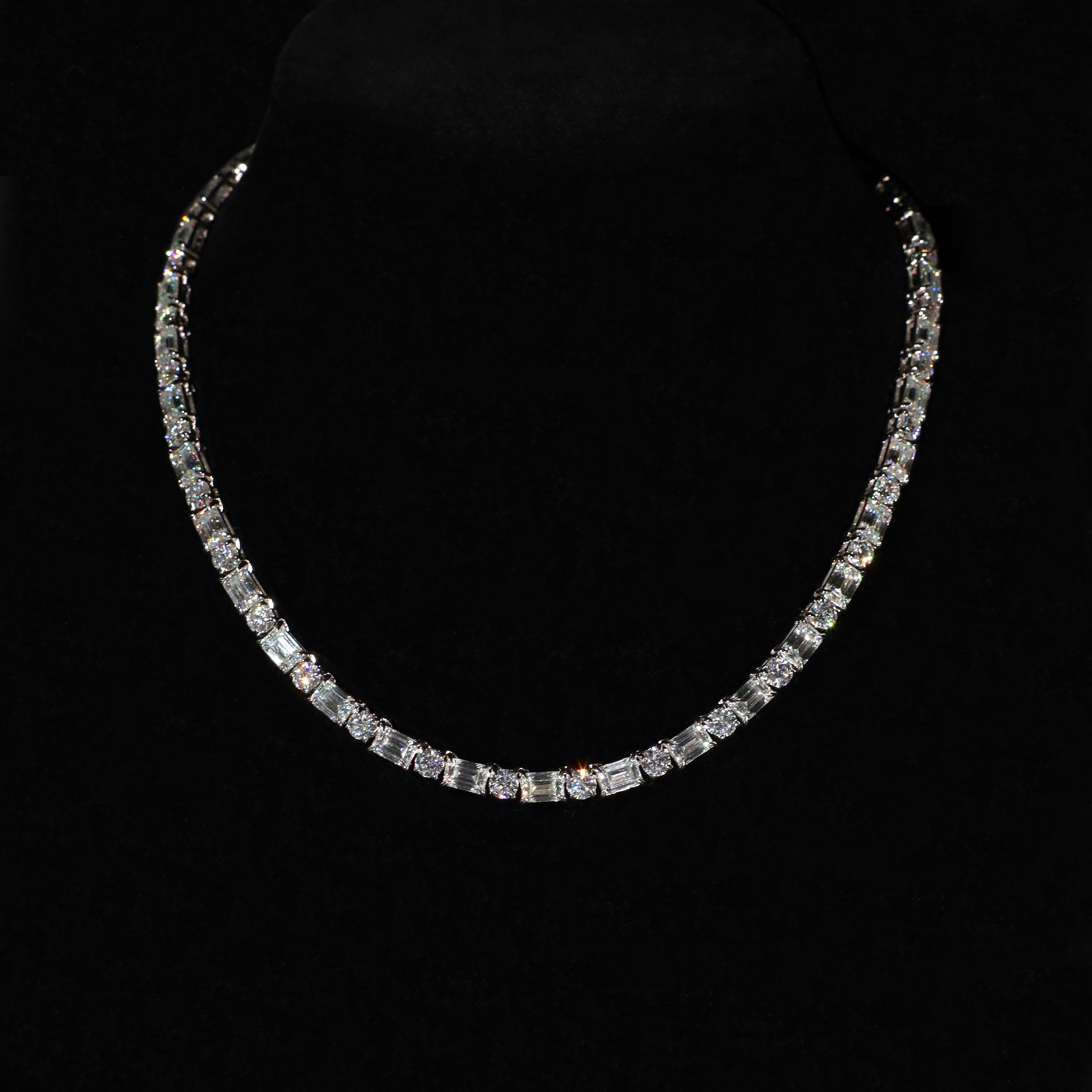 5mm Round & Emerald Cut Tennis Necklace (White Gold)