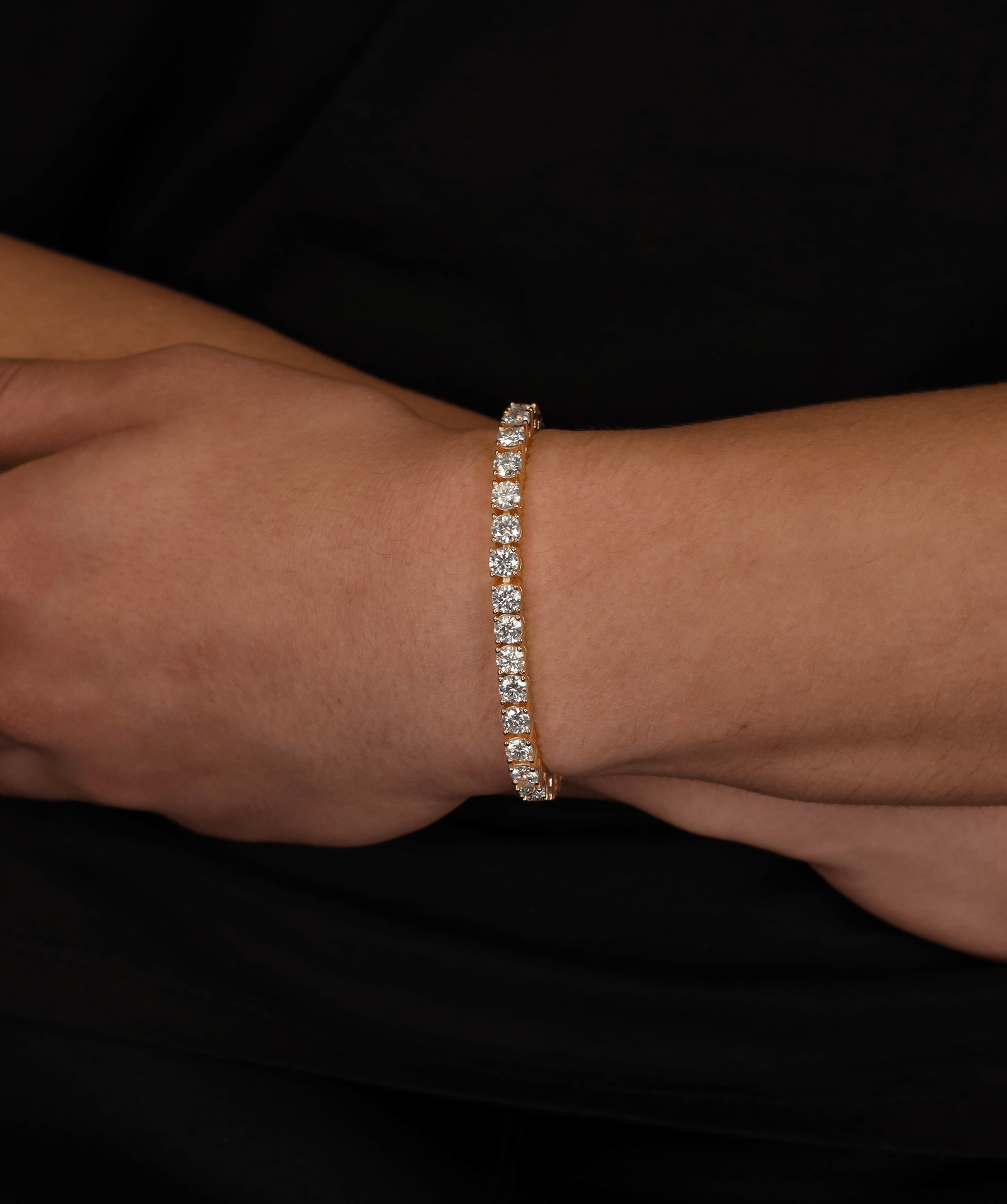 The 5mm Tennis Bracelet delivers an understated yet commanding presence, designed to complement any look with precision and clarity. Each stone is expertly set for maximum brilliance, secured with a box clasp and safety latch for a seamless fit.