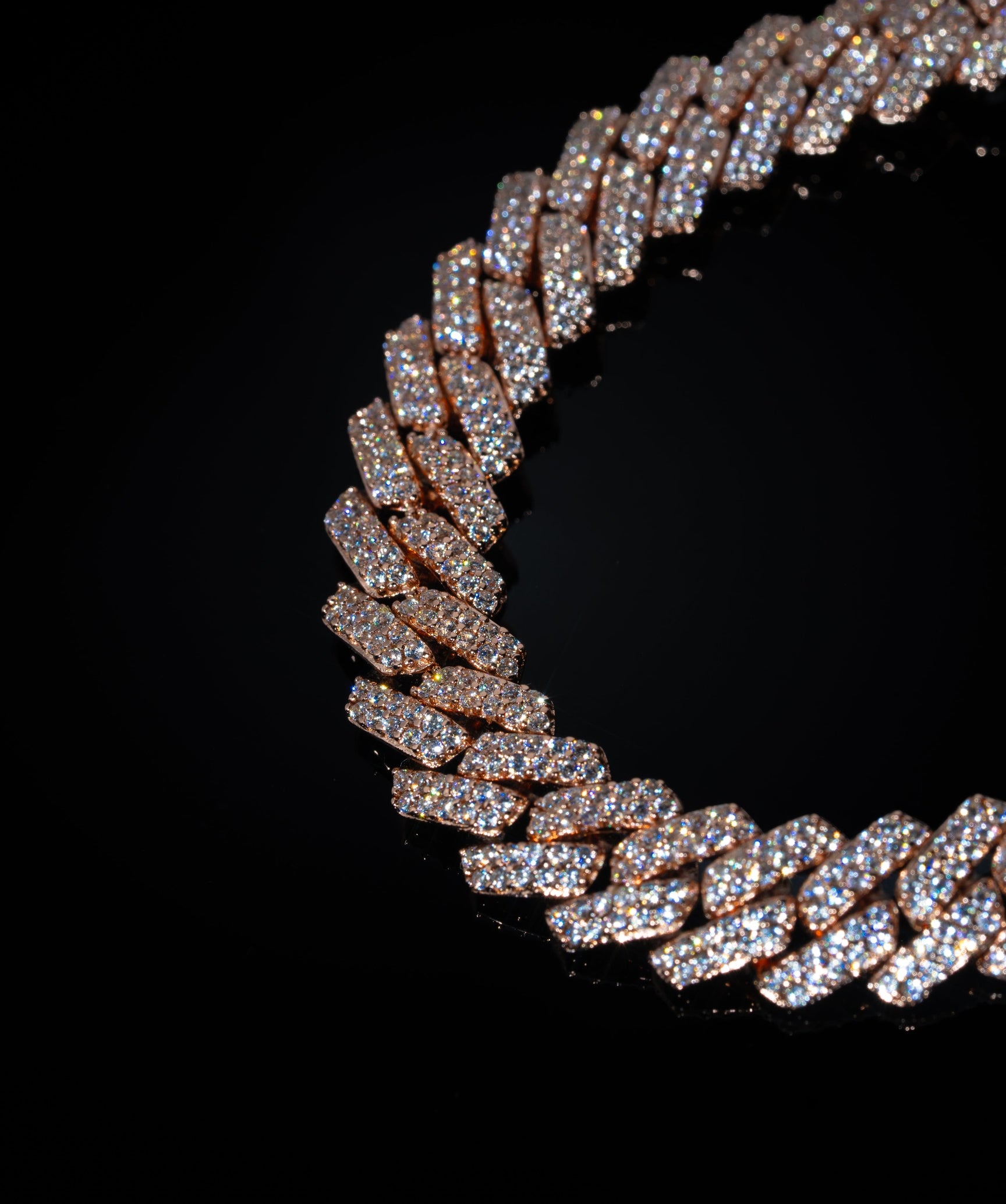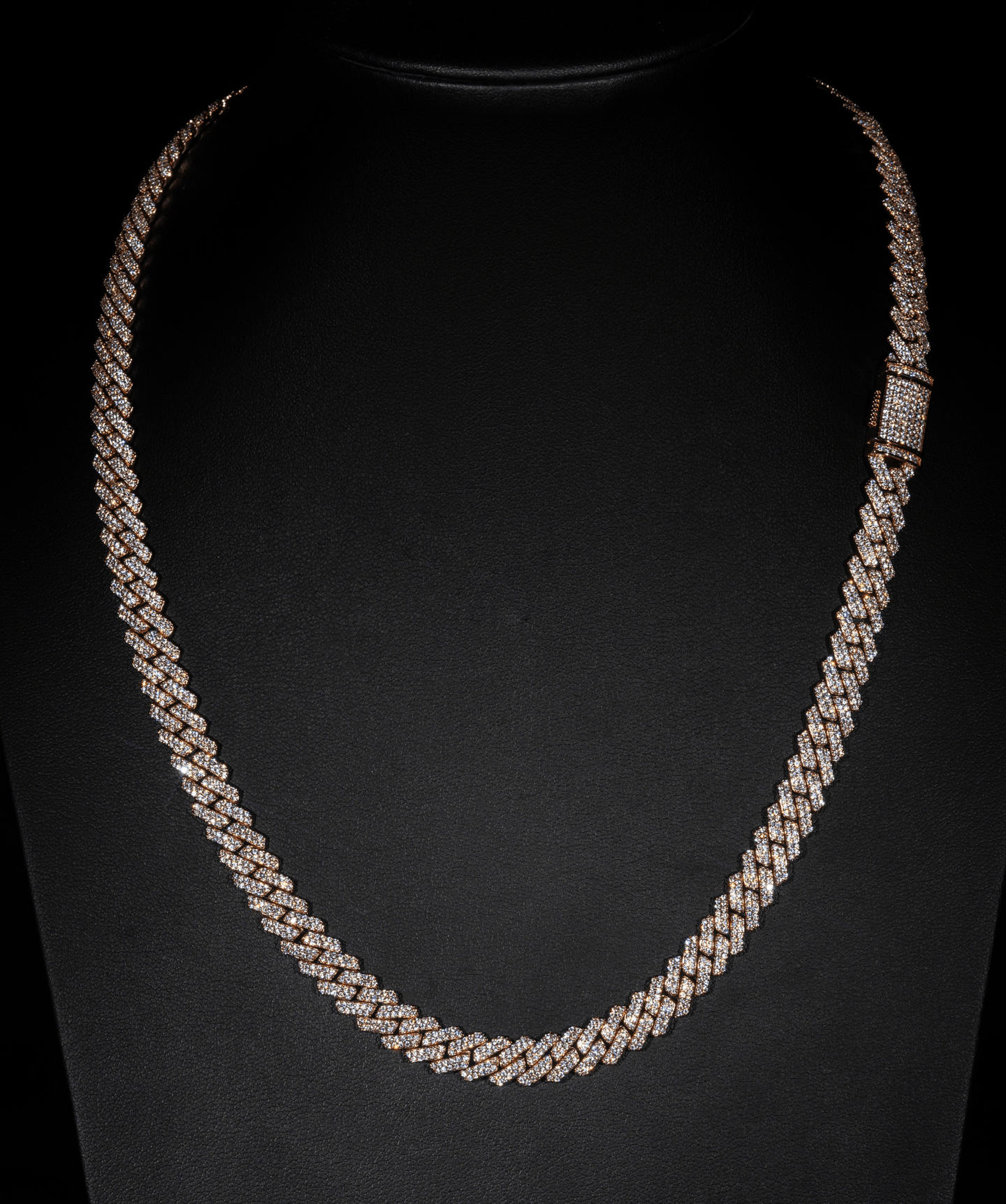 The 8mm Prong Cuban Link Chain refines a bold statement into a streamlined, contemporary piece. Designed with precision prong settings, each stone maximises light refraction, creating an intense brilliance that catches the eye, making it an essential addition to any jewellery collection. Whether layered or worn solo, it embodies effortless luxury.