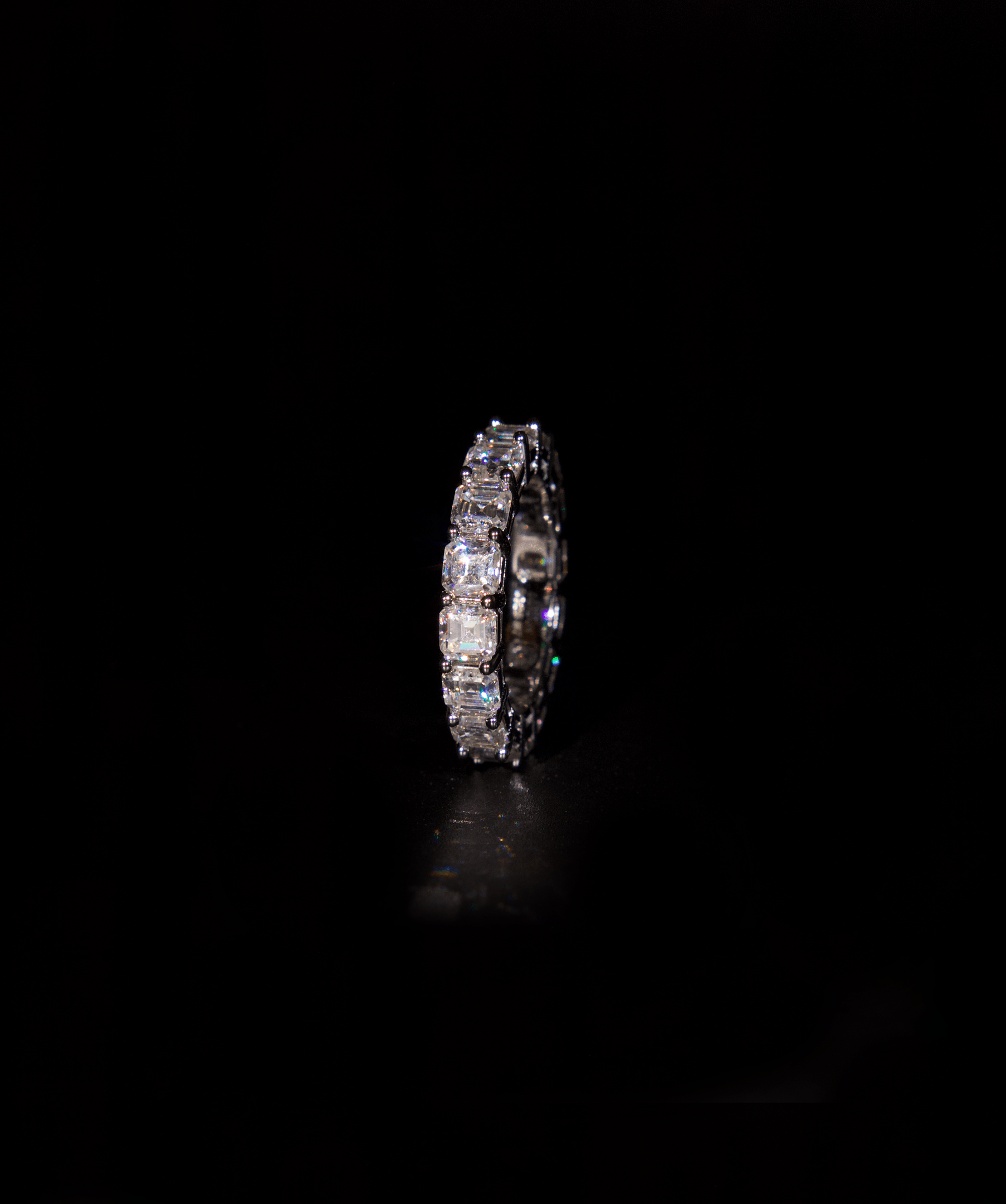 A seamless circle of Asscher-cut brilliance, this eternity ring embodies refinement and prestige. Each stone is precision-set to create an uninterrupted display of fire and depth, a timeless expression of understated luxury.