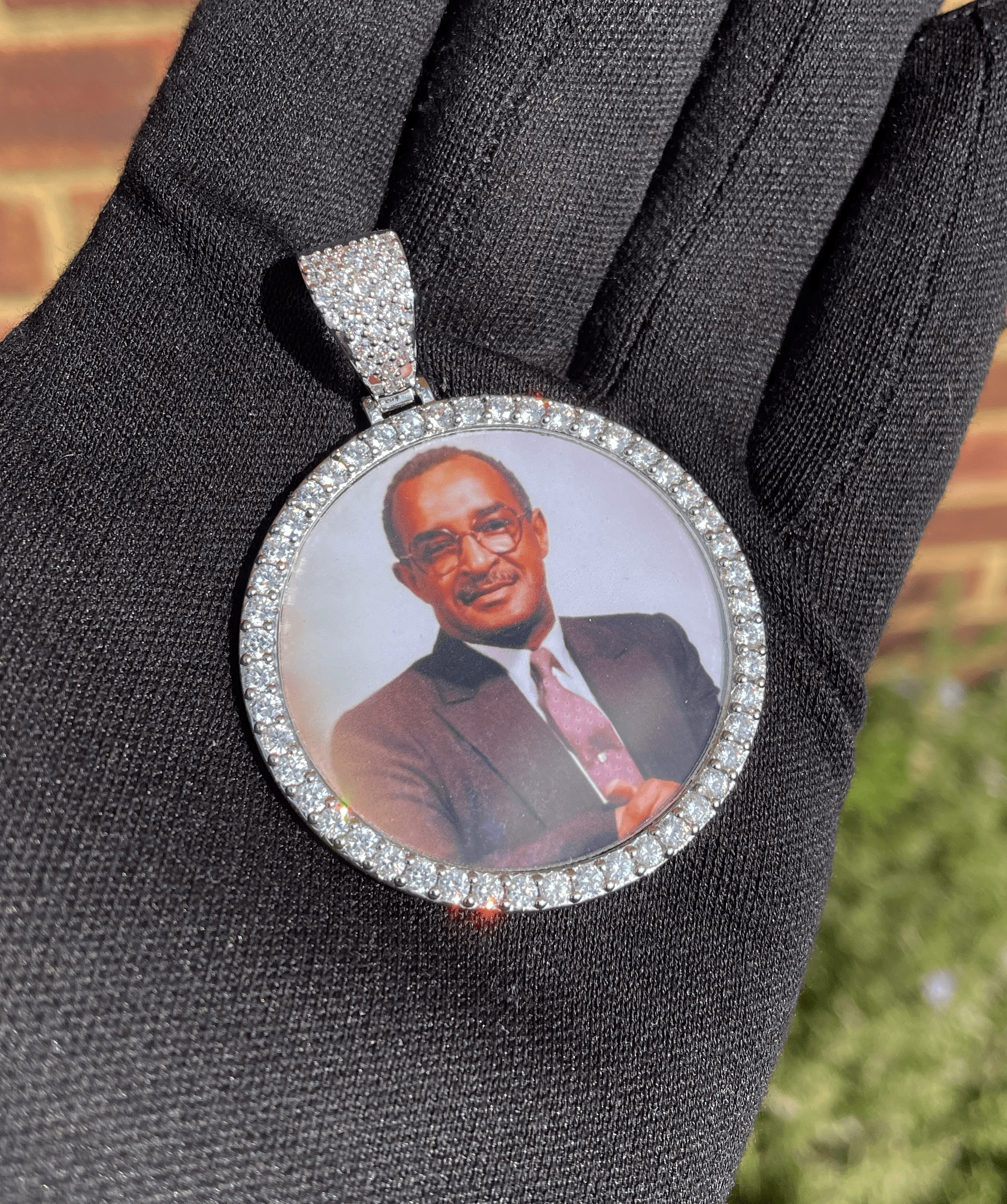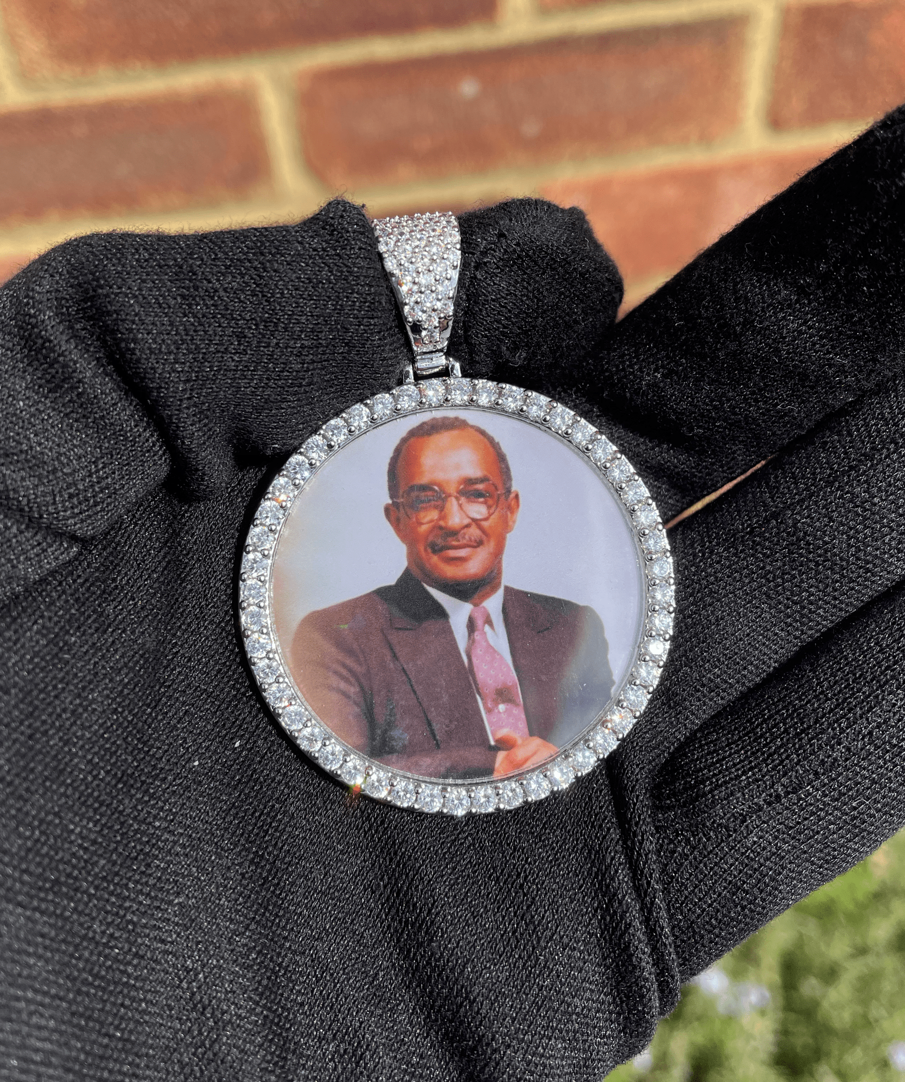 Iced London's handcrafted, customised photo pendant brings a unique way to honour your loved ones, relatives and friends by allowing you to hold their memories with you in every moment. Your picture will be cropped to fit perfectly into the image area, covered by a protective glass. A unique way to express your love.
