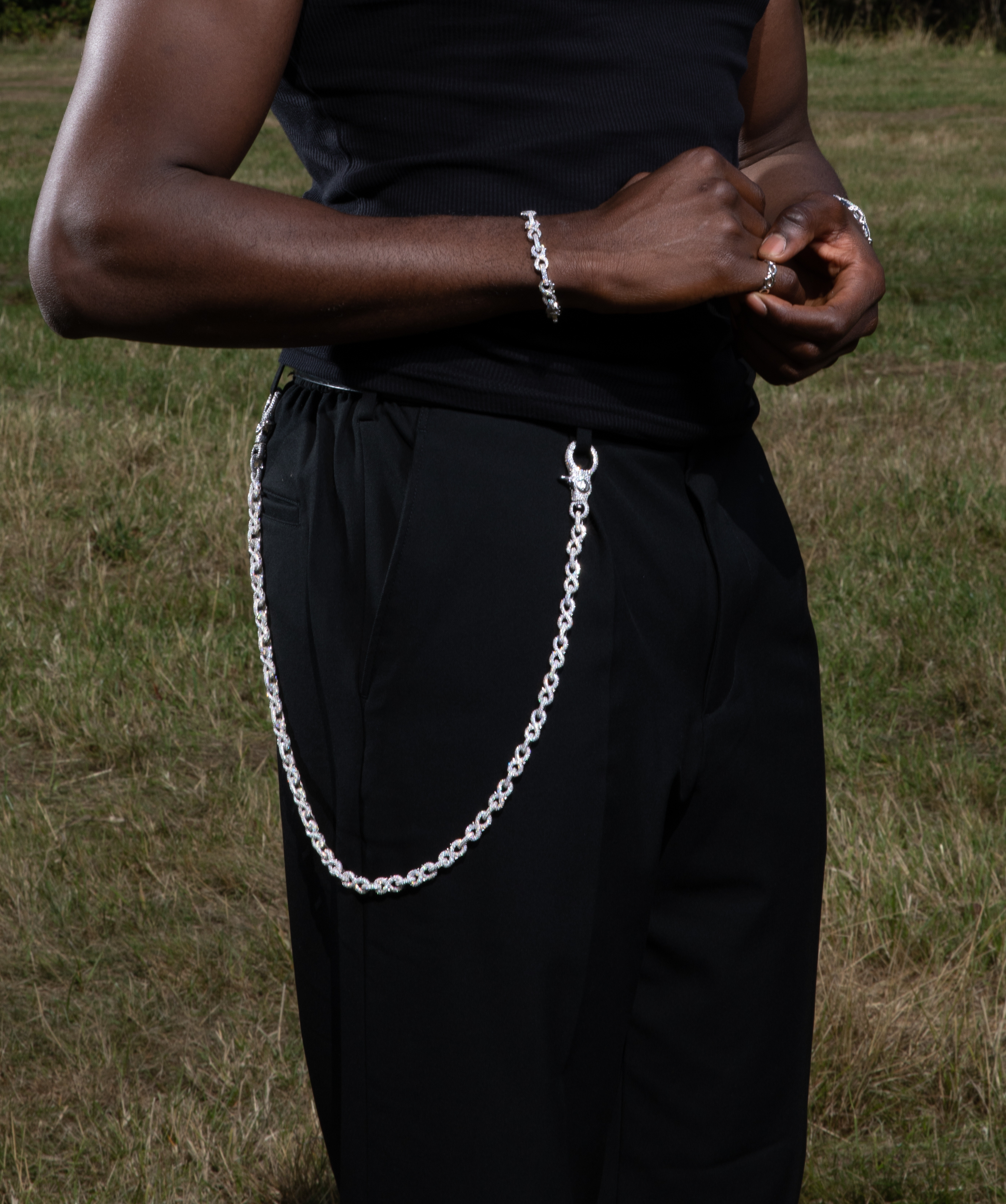 Iced London Infinity Thorn silver cubic zirconia diamond wallet chain for men – luxury designer accessory