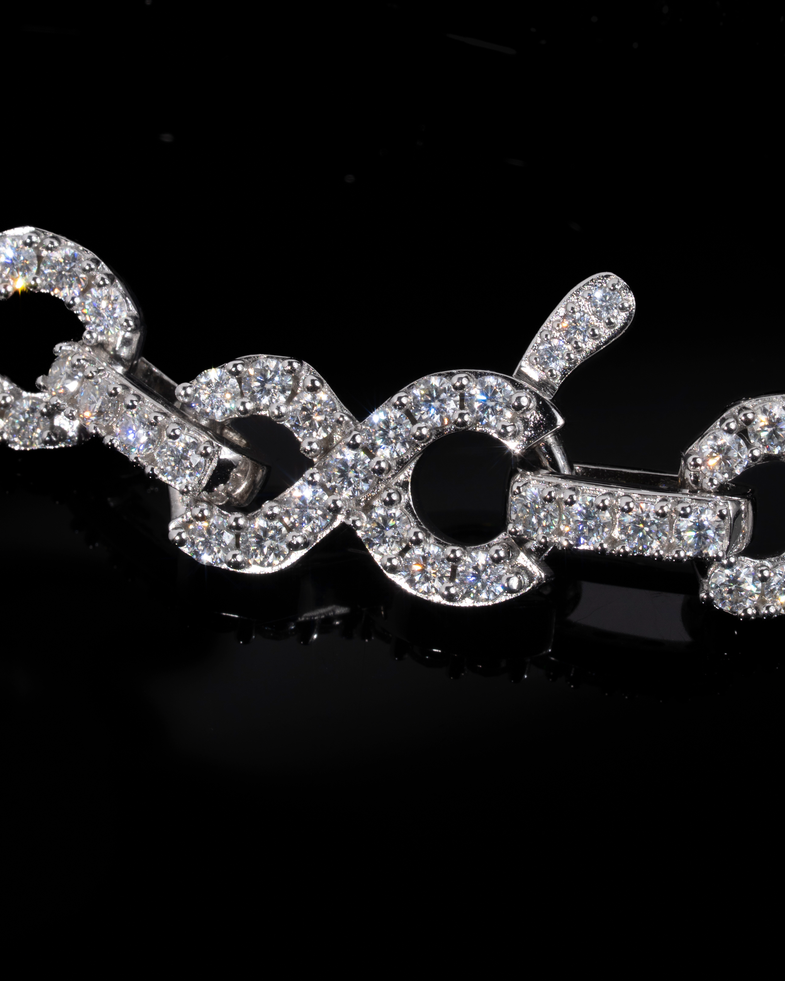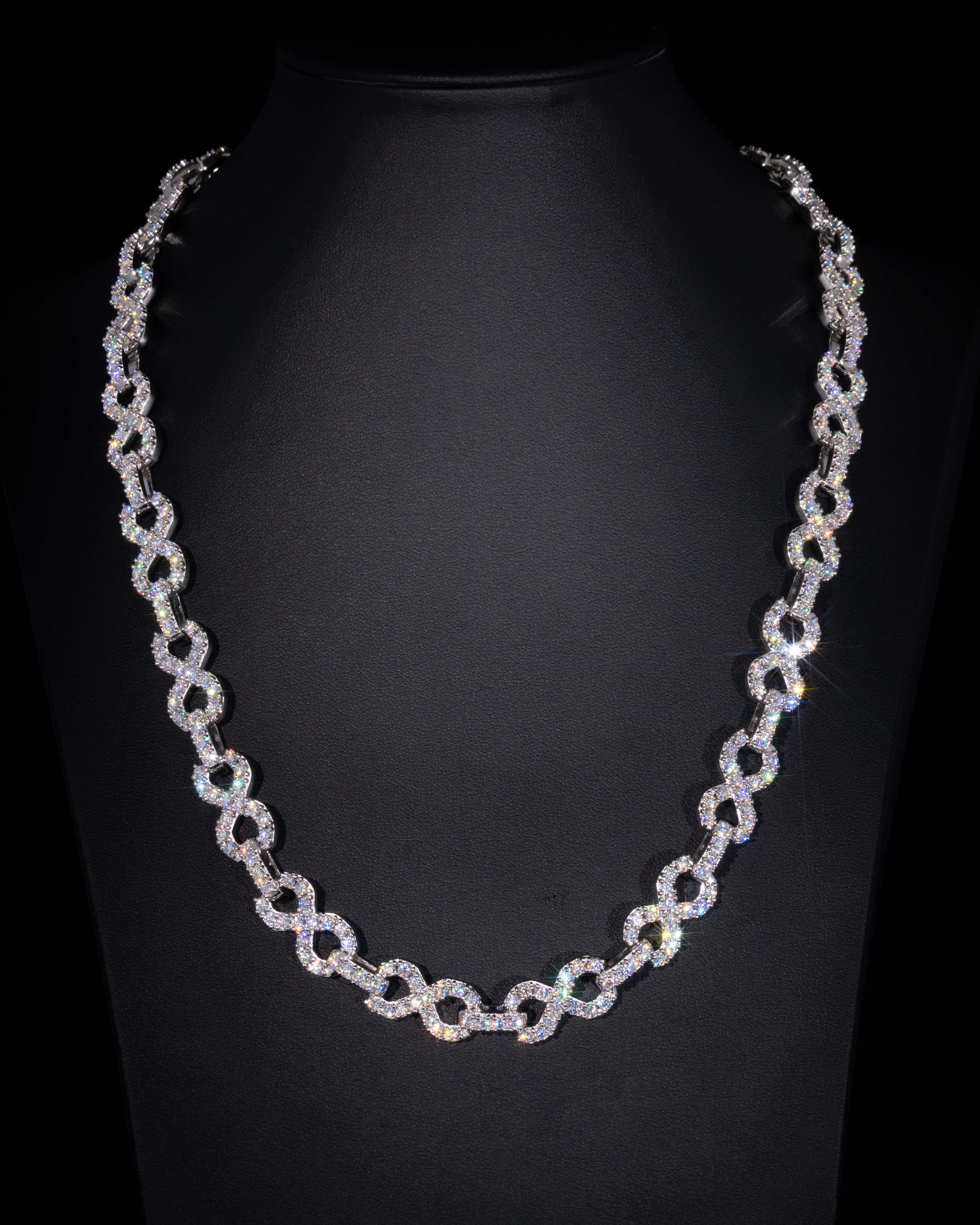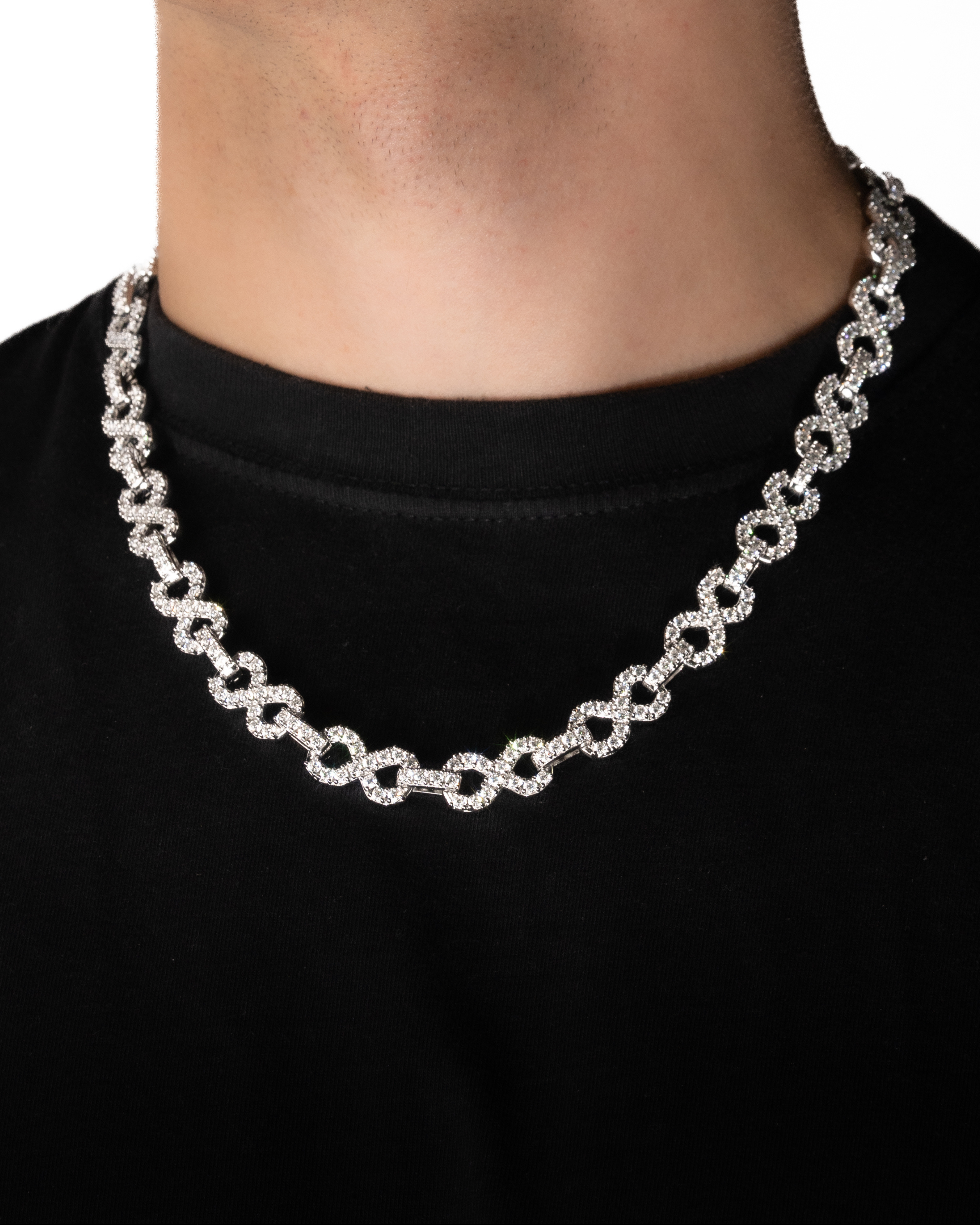 A continuous expression of connection and precision, the ICED LONDON Infinity Link Chain stands apart with its interlocked silhouette and bold fluidity. Each stone is meticulously handset to accentuate the flowing pattern, delivering striking brilliance from every angle.