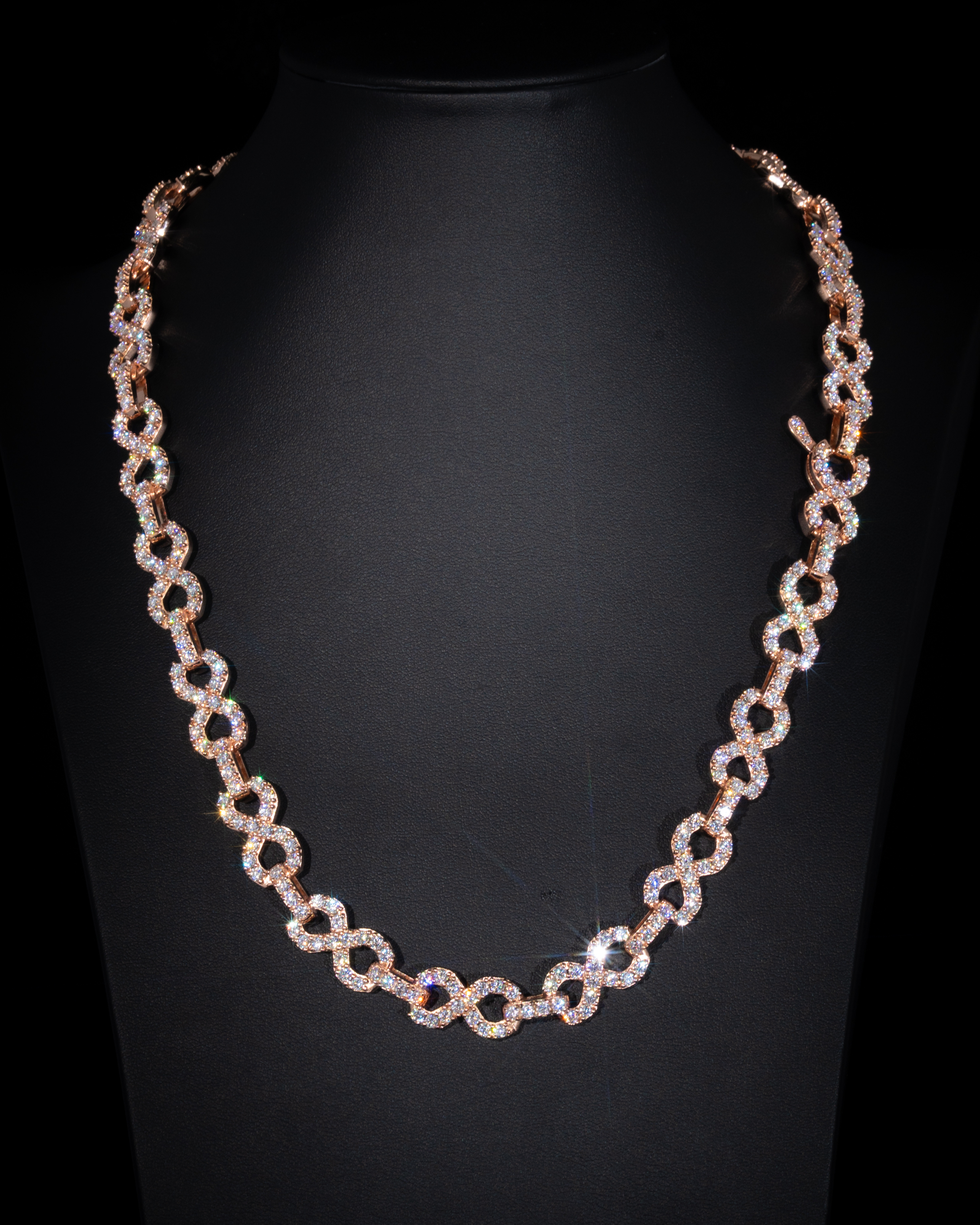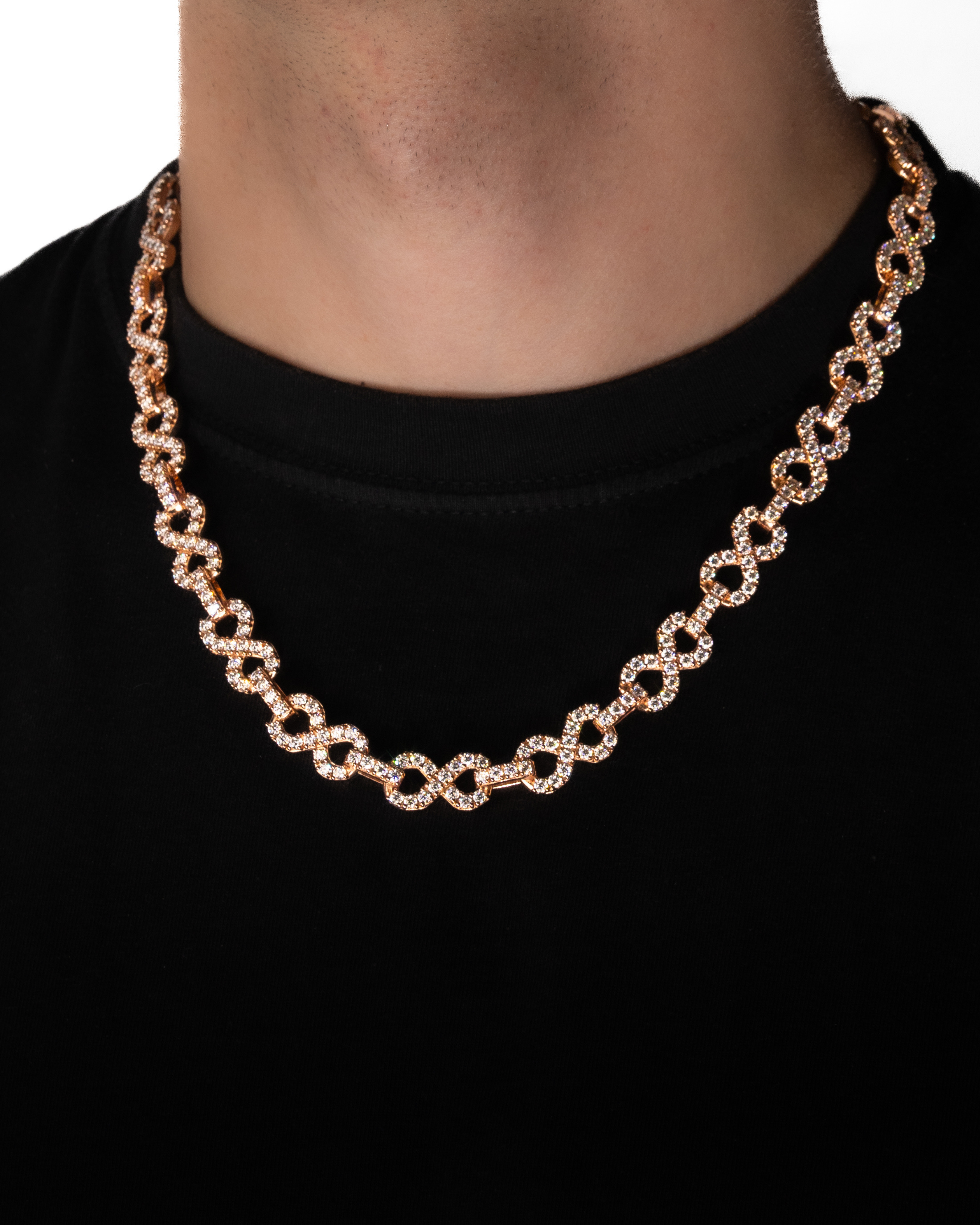 A continuous expression of connection and precision, the ICED LONDON Infinity Link Chain stands apart with its interlocked silhouette and bold fluidity. Each stone is meticulously handset to accentuate the flowing pattern, delivering striking brilliance from every angle.