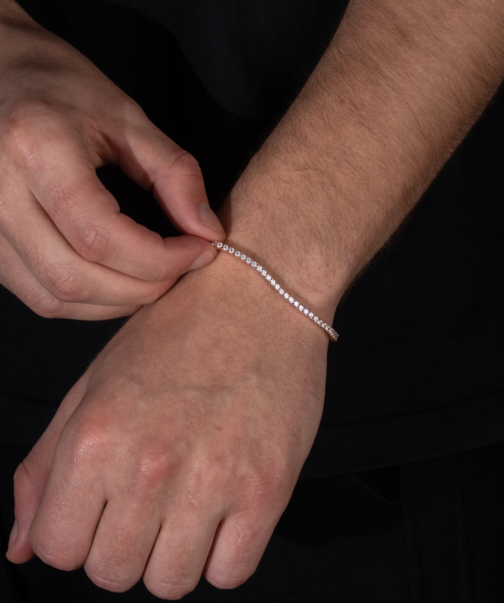 The micro tennis bracelet offers a sleek, low-profile look without compromising brilliance. Designed with precision, each 2mm stone is hand-set to ensure seamless flow and maximum shine. Perfect for layering or wearing solo, this bracelet delivers a refined edge that suits any occasion. A secure clasp ensures durability while maintaining a barely-there feel.