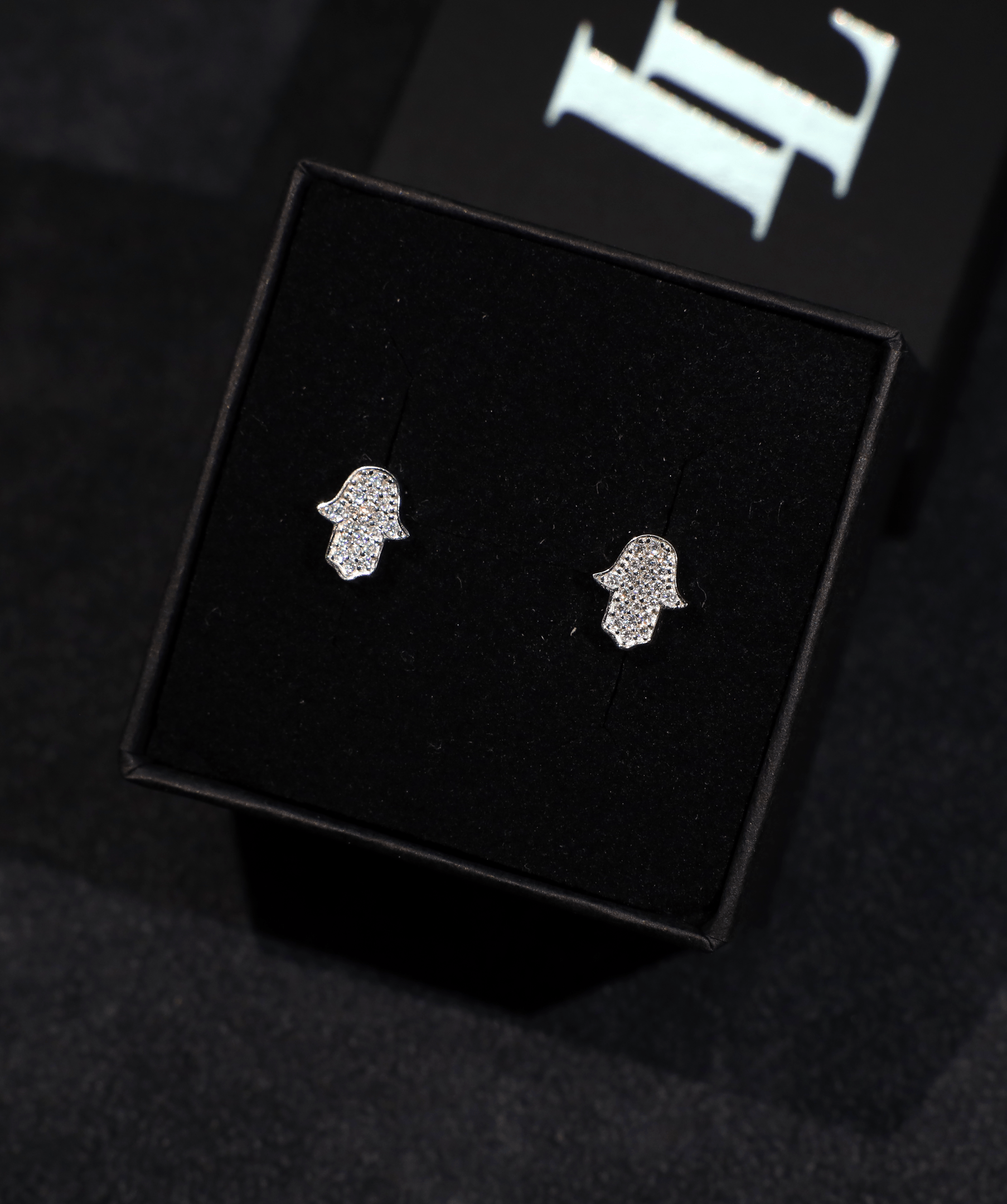 The Hamsa hand is recognised across cultures as a symbol of protection, good fortune, and strength. These mini stud earrings bring that meaning to life with pavé-set stones, set in 925 silver with a rhodium finish. Designed for a refined yet understated look, their compact size makes them ideal for layering or wearing alone as a subtle statement.