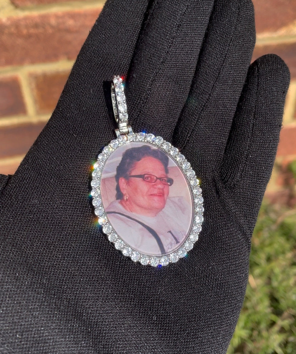 Iced London's handcrafted, customised photo pendant brings a unique way to honour your loved ones, relatives and friends by allowing you to hold their memories with you in every moment. Your picture will be cropped to fit perfectly into the image area, covered by a protective glass. A unique way to express your love.
