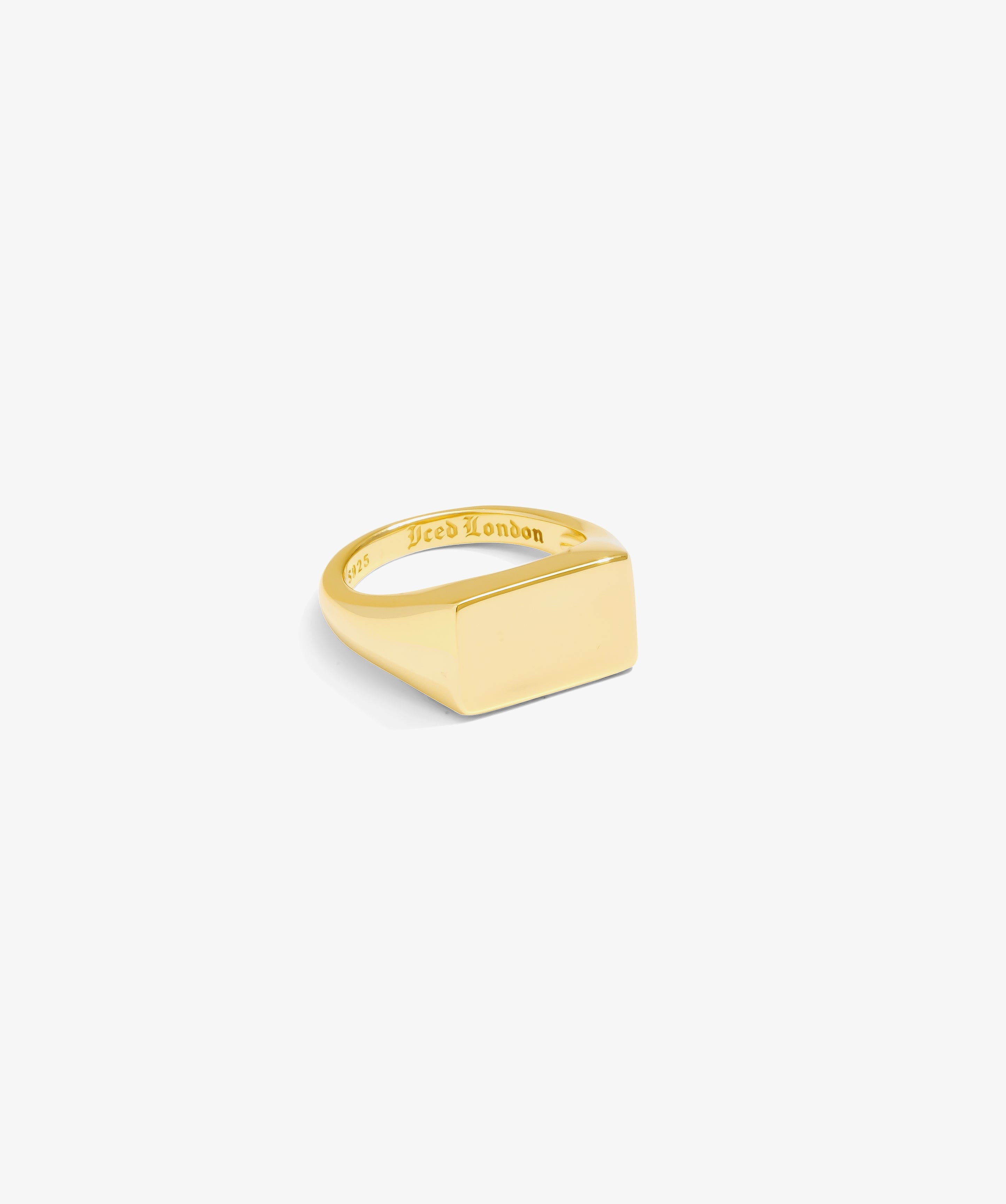 A sleek rectangular signet defined by its sharp, architectural profile.